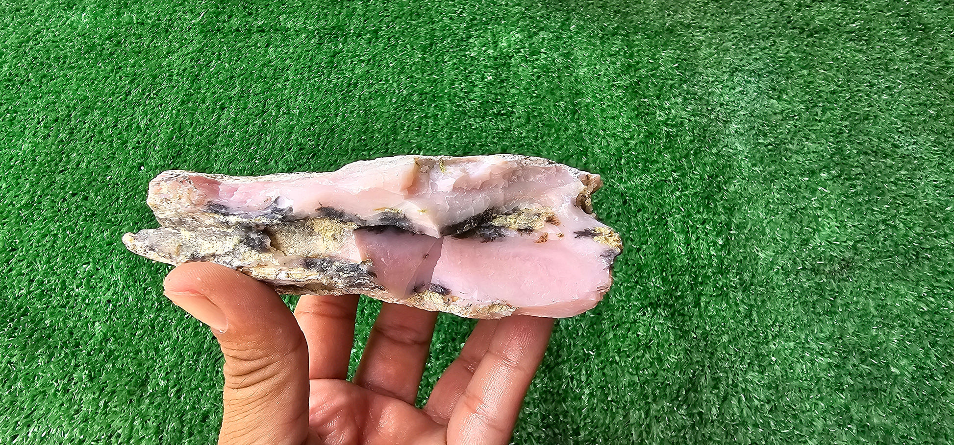 Pink Opal is a type of Common Opal that is generally opaque and does not show the “fire” like that of Precious Opals. The color ranges from a bright baby girl pink to a pink-white, cream, or even lavender. Over the course of time Pink Opal has adopted the nickname “Peppermint candy stone”, due to its close resemblances to that of candies. The country of Peru is known to have the brightest and most impressive Pink Opal specimens, but it can also be found in other South American countries, USA, and even Australia. It's very important to not expose your Opal to sunlight, as this stone has water within.