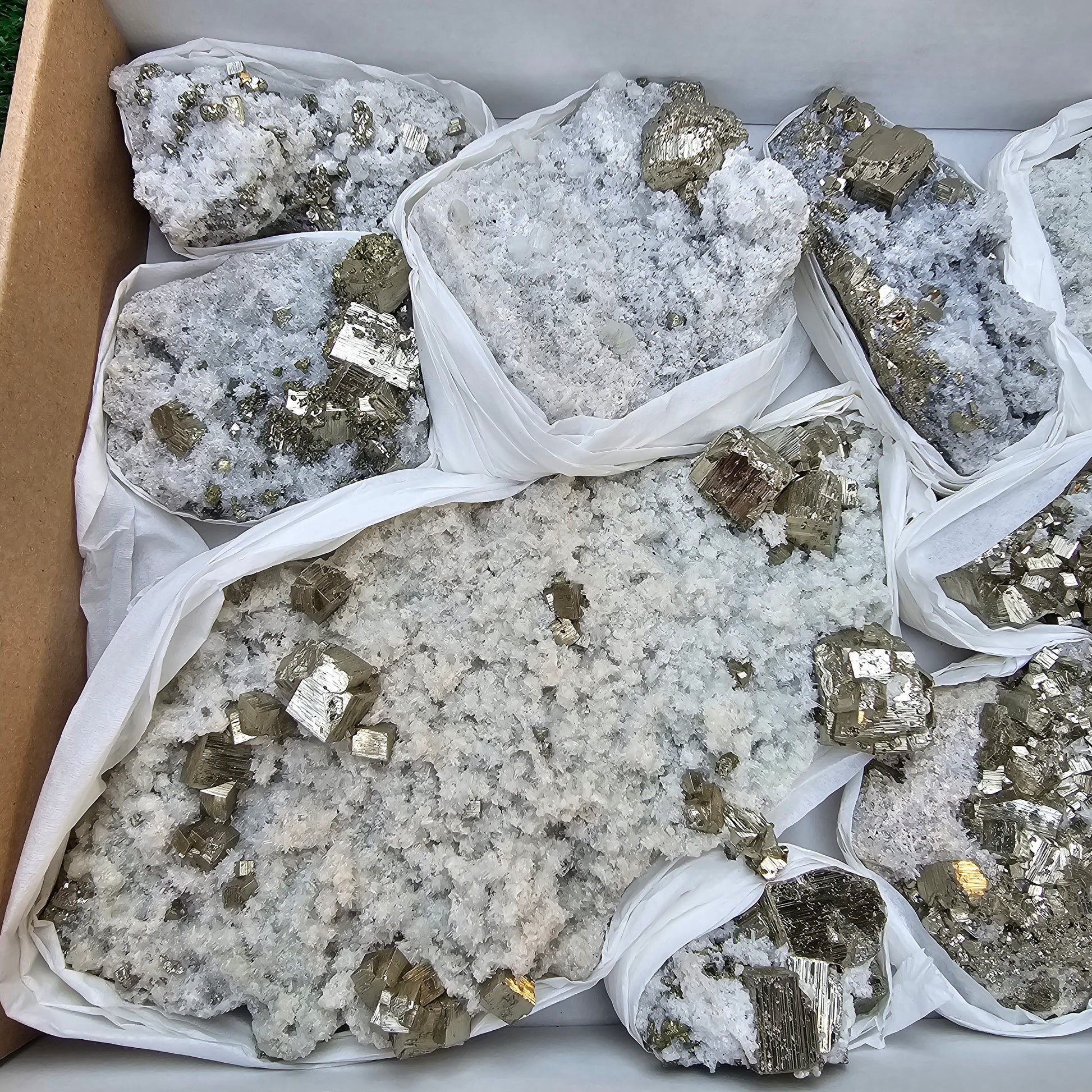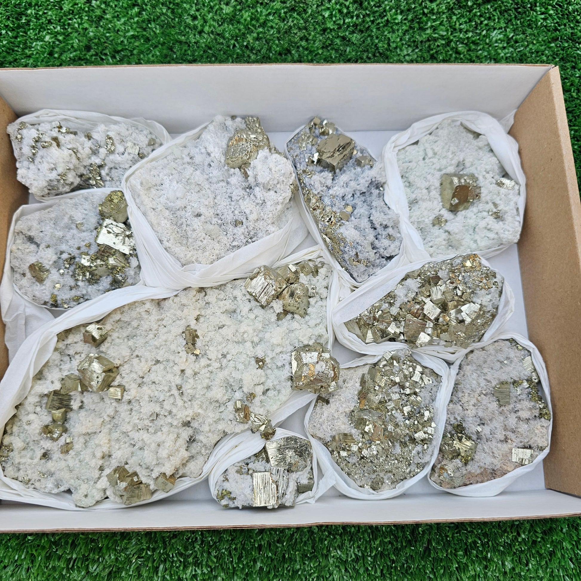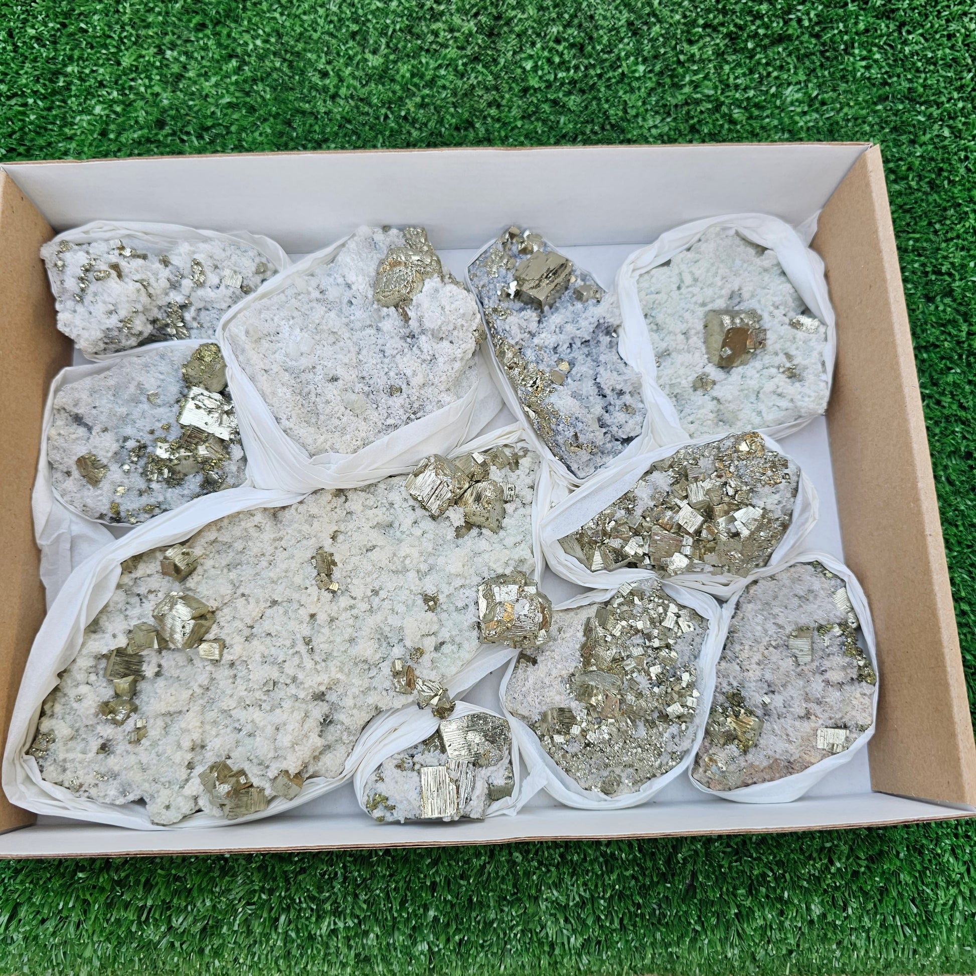 10 pc Pyrite Cubic with calcite flourecent