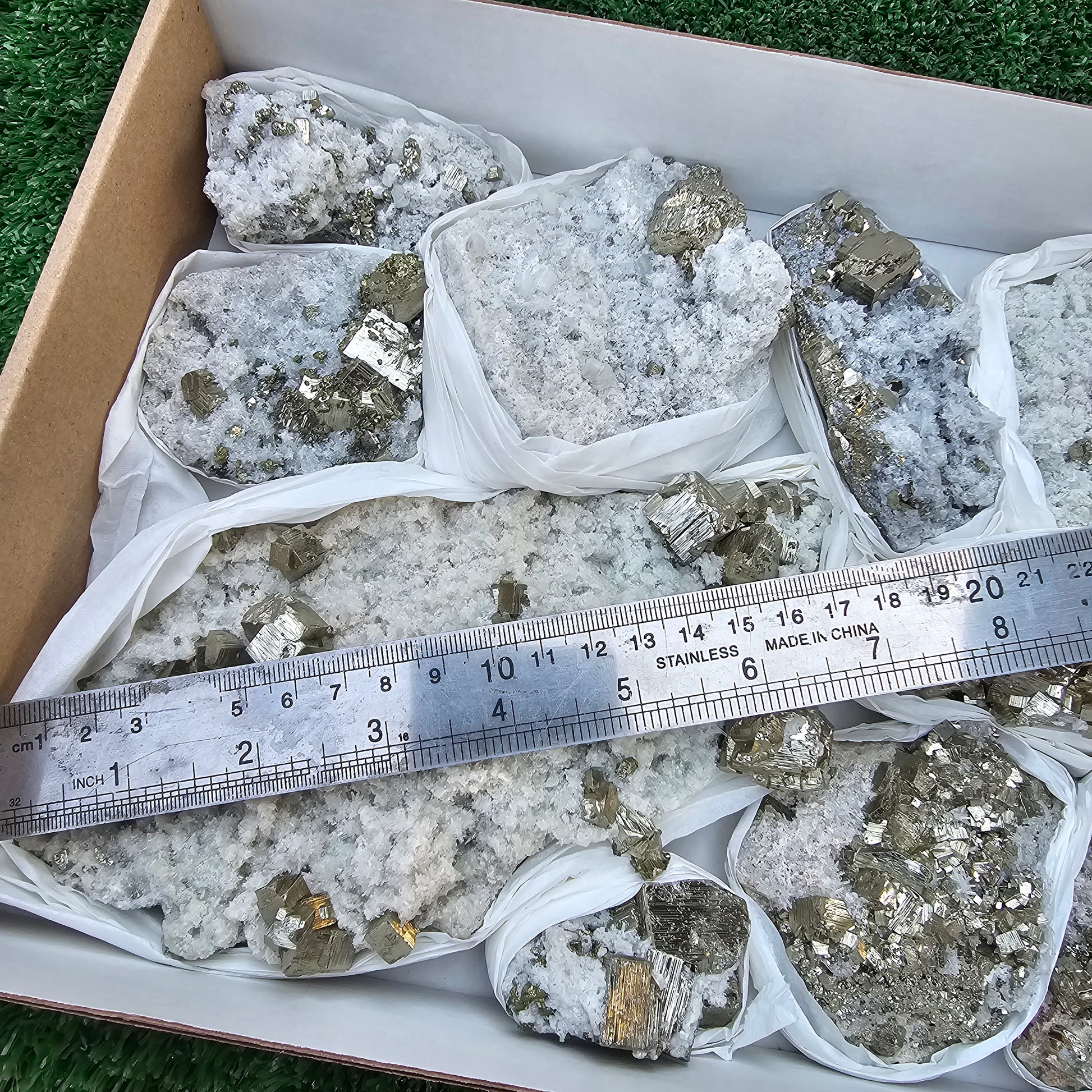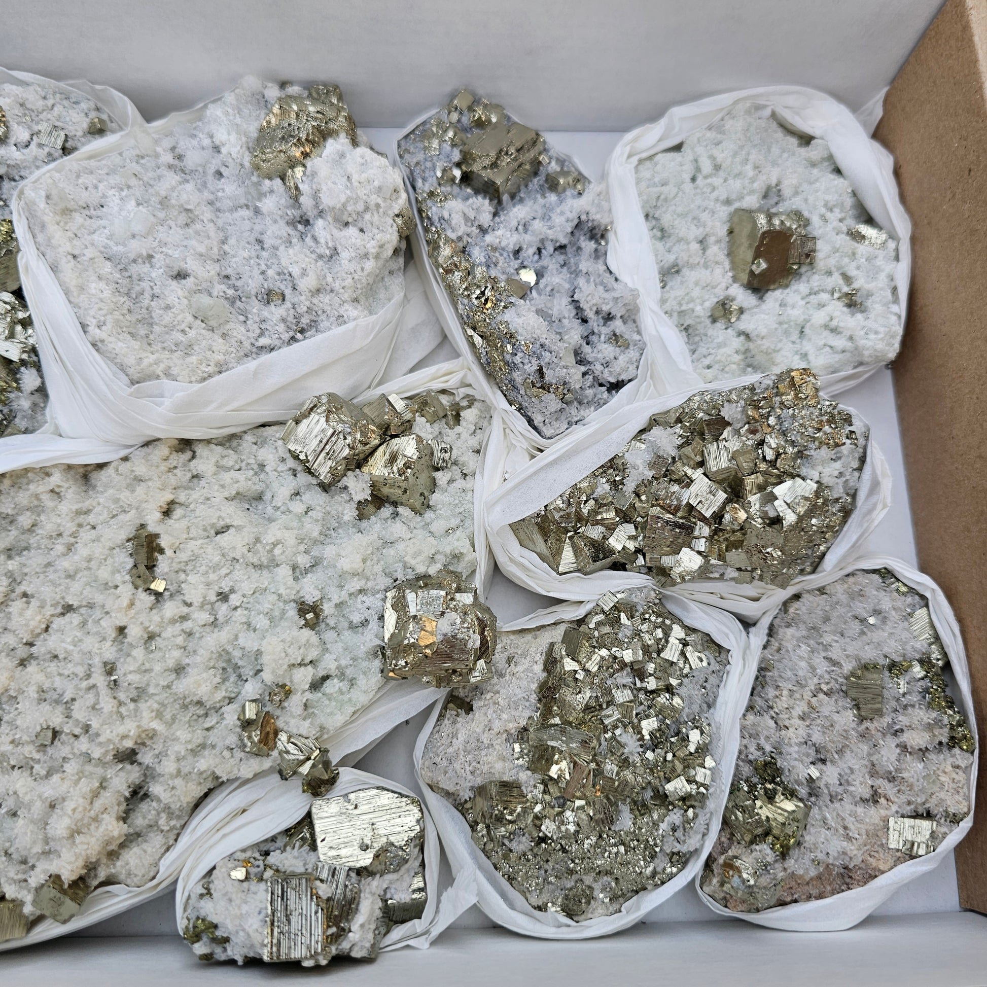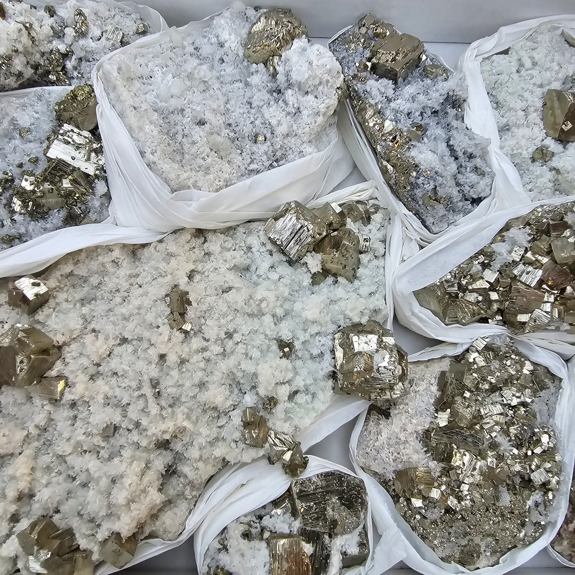 10 pc Pyrite Cubic with calcite flourecent