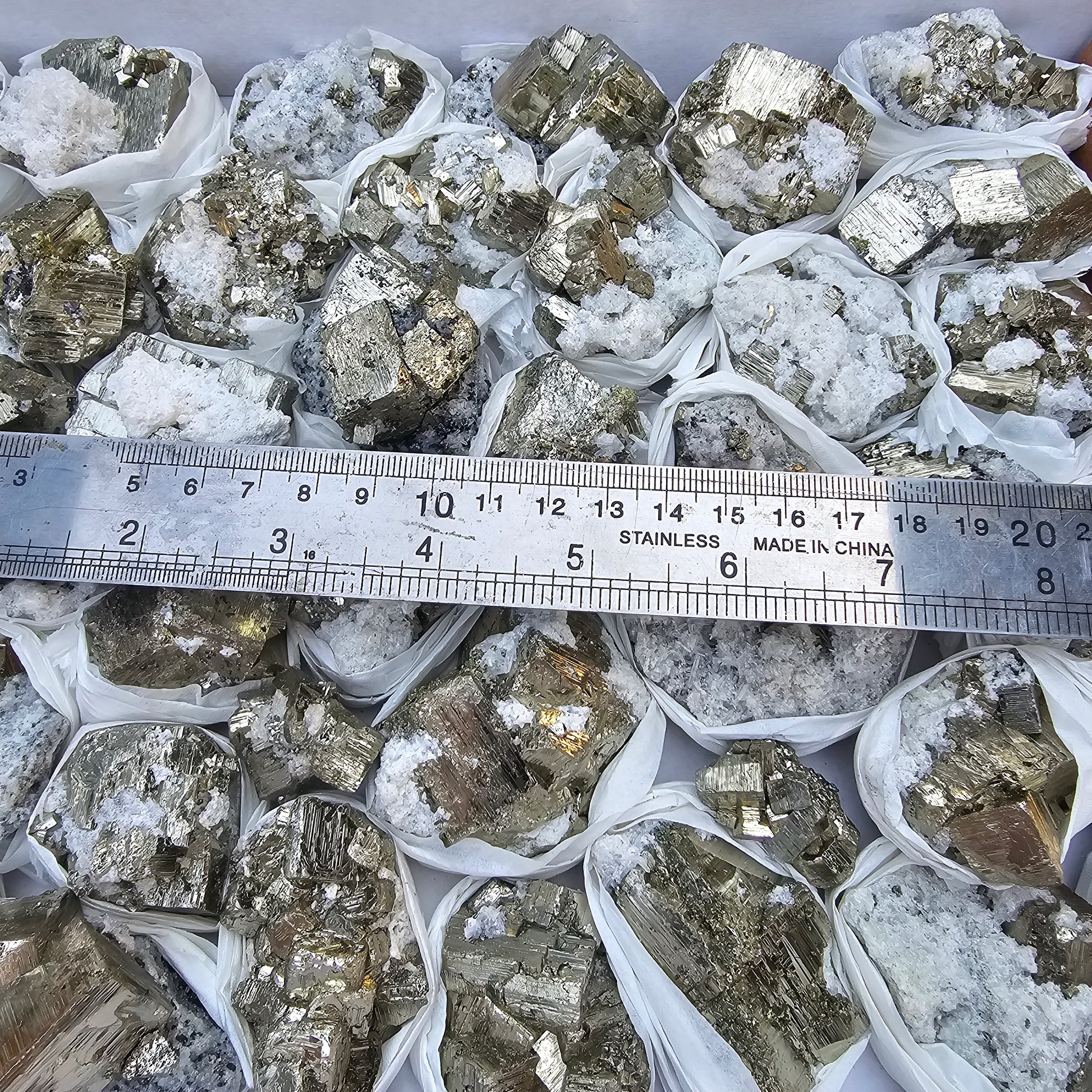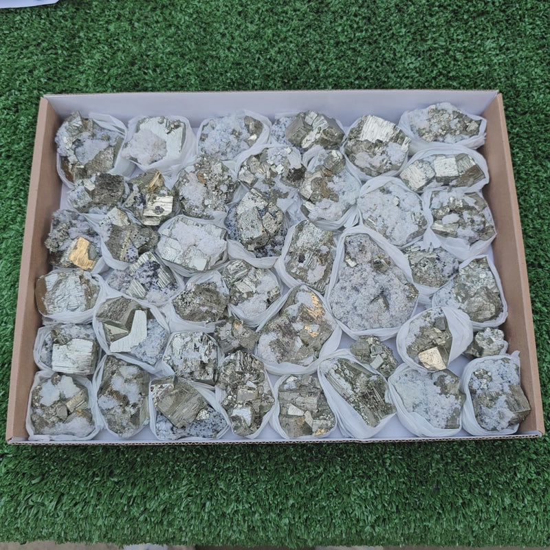 41 pc Pyrite Cubic with calcite flourecent