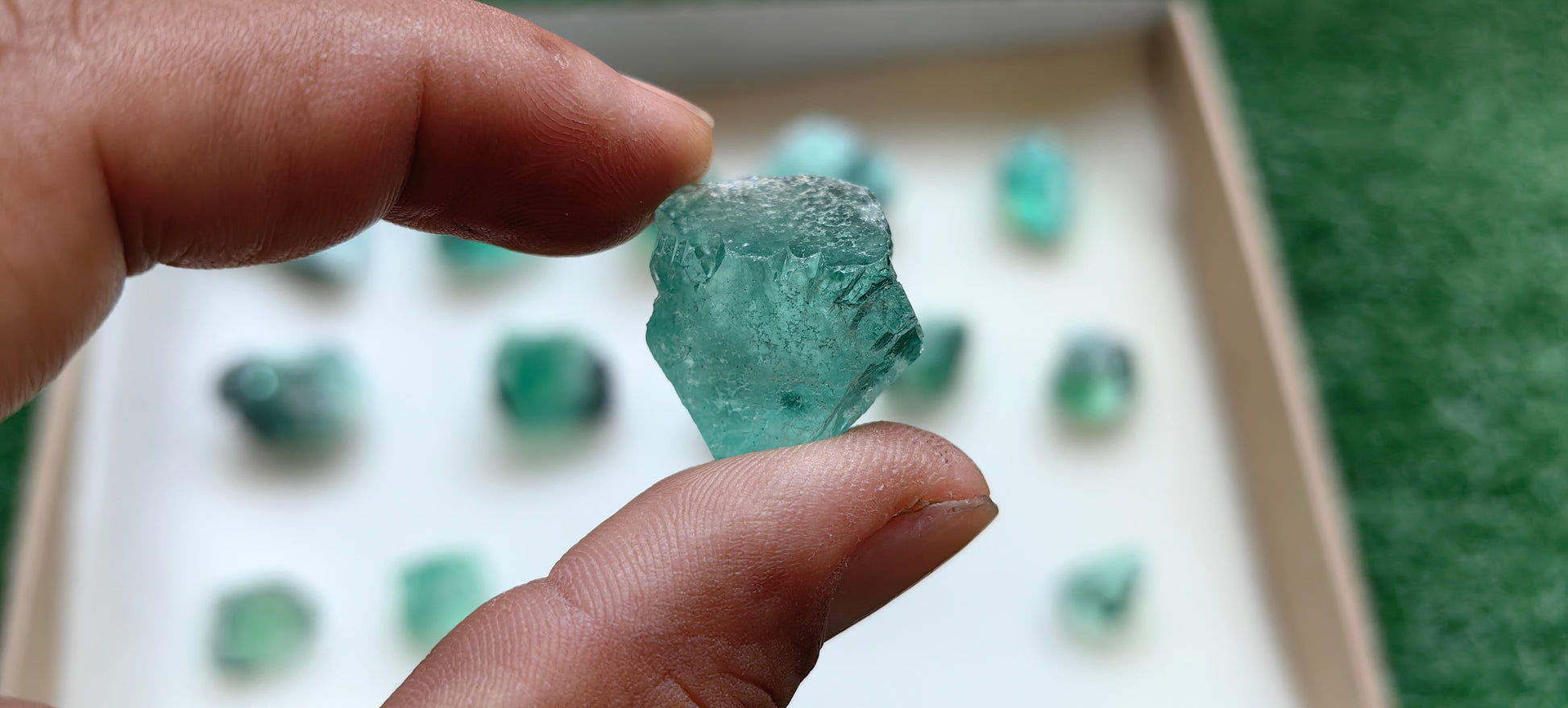 Beautiful clusters of green Peruvian fluorites and a gorgeous color gradient.