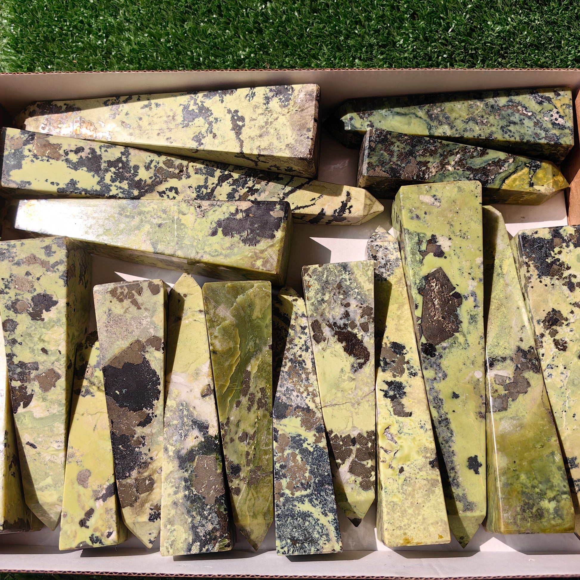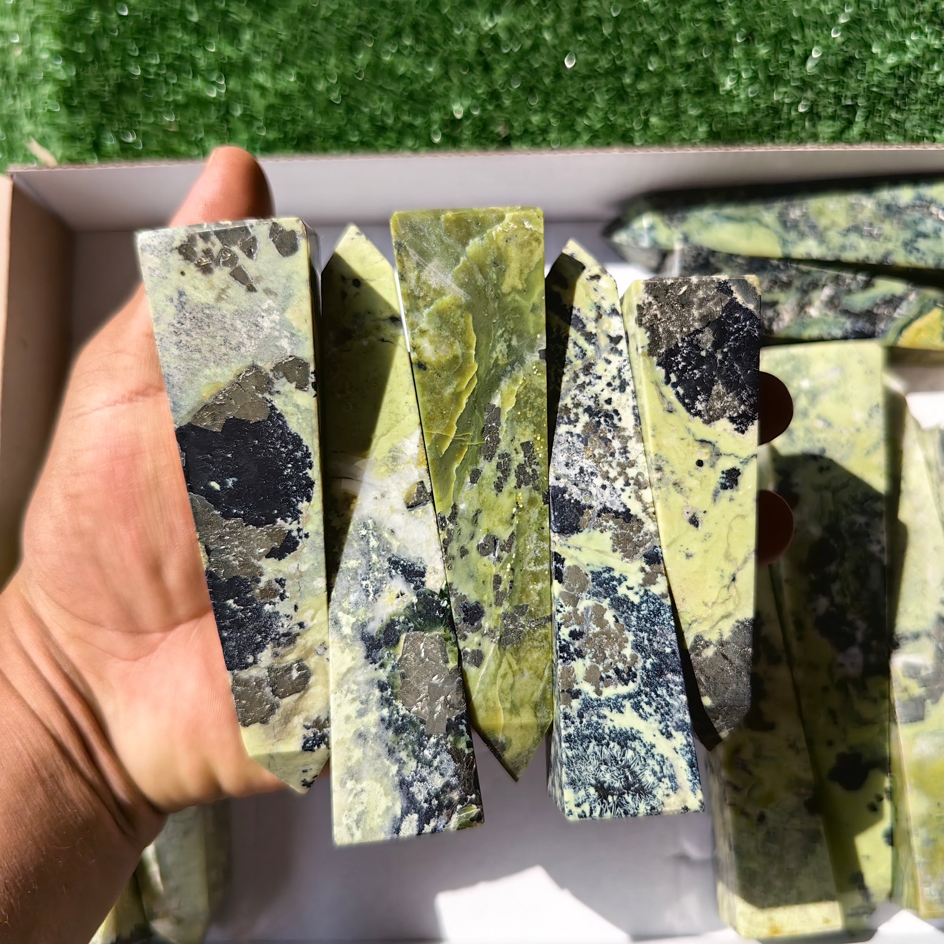 Item: green serpentine towers