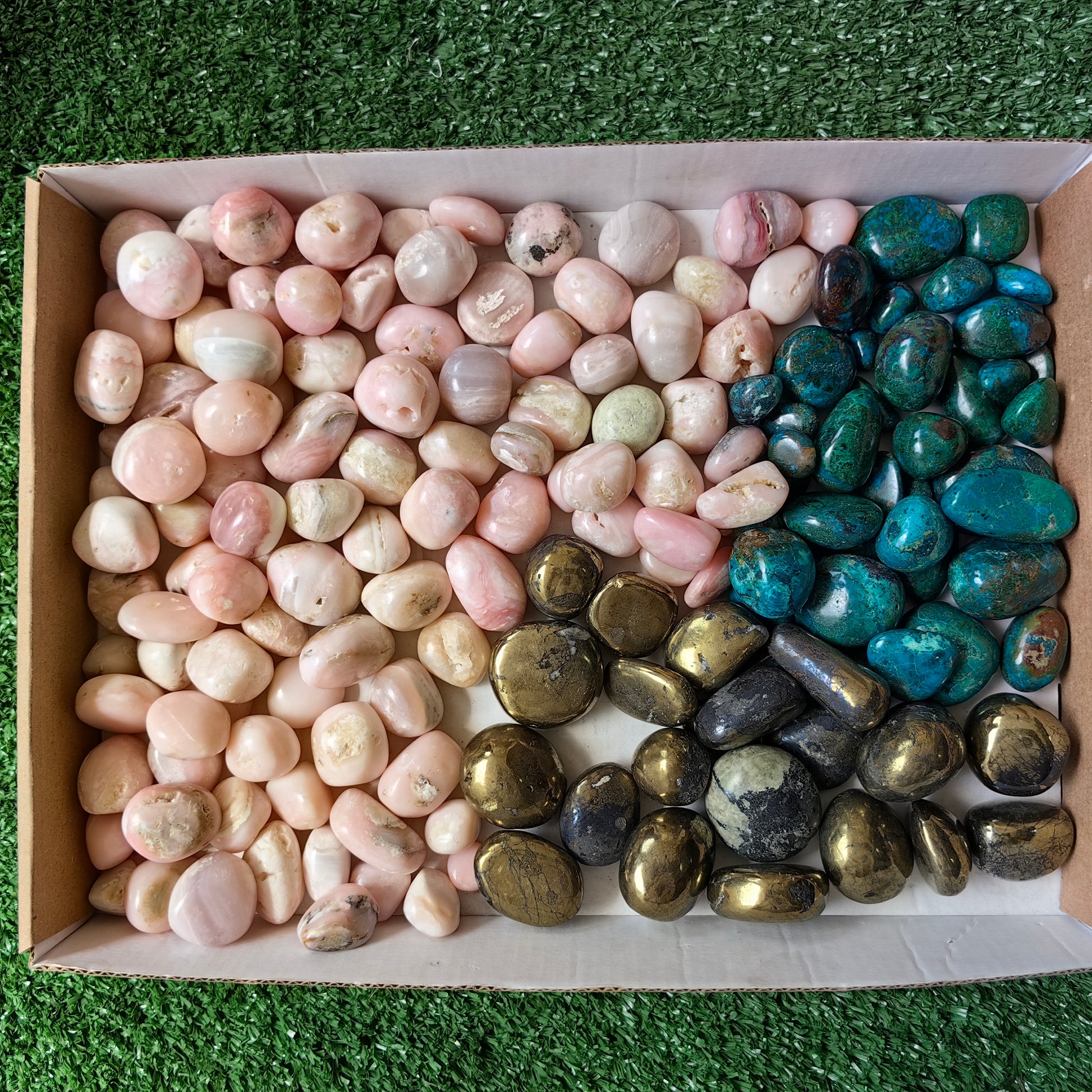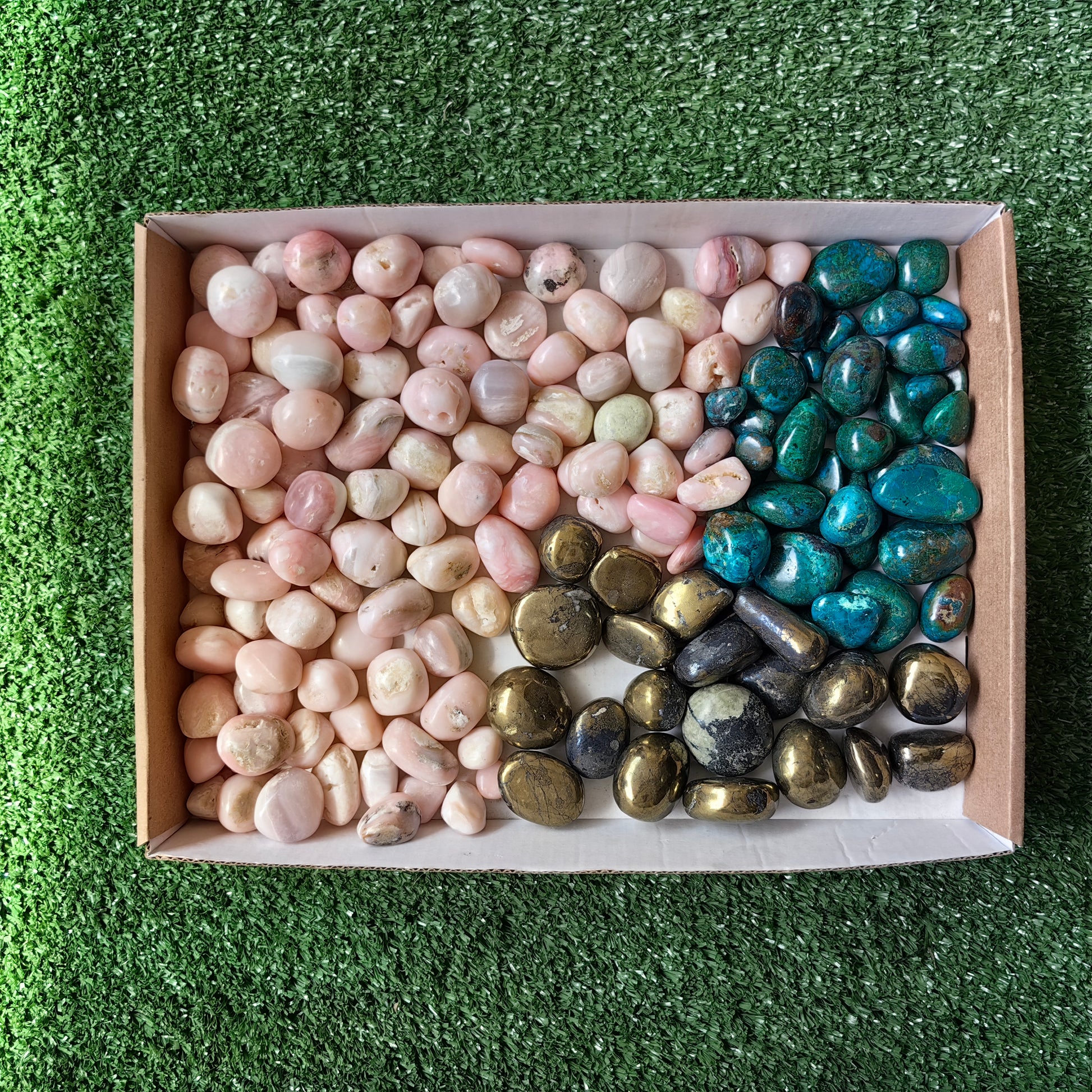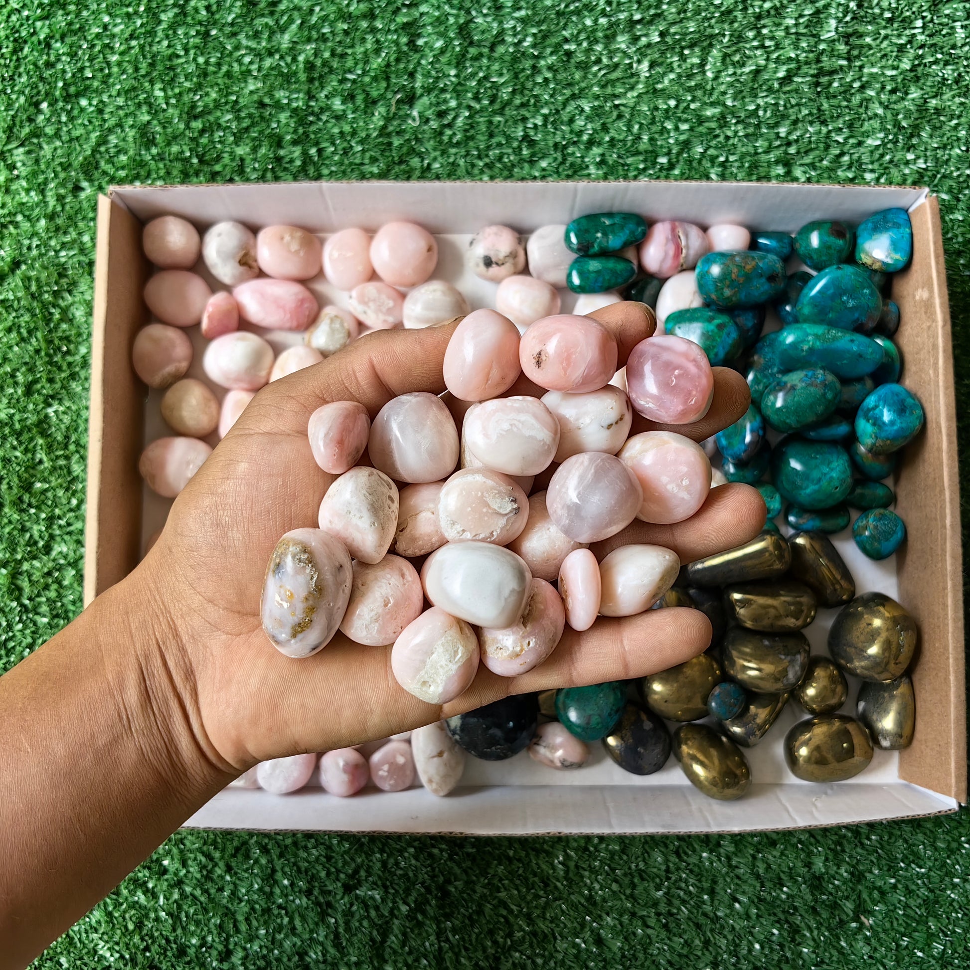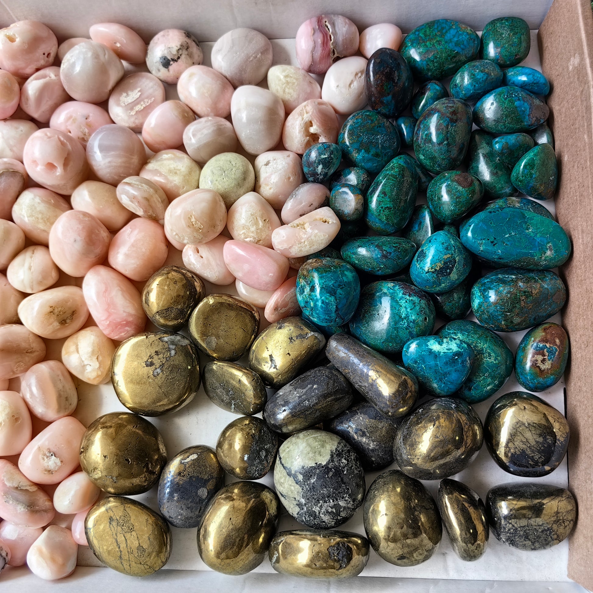 2 kg tumbled mixted pink opal chrysocolla and chalcopyrite