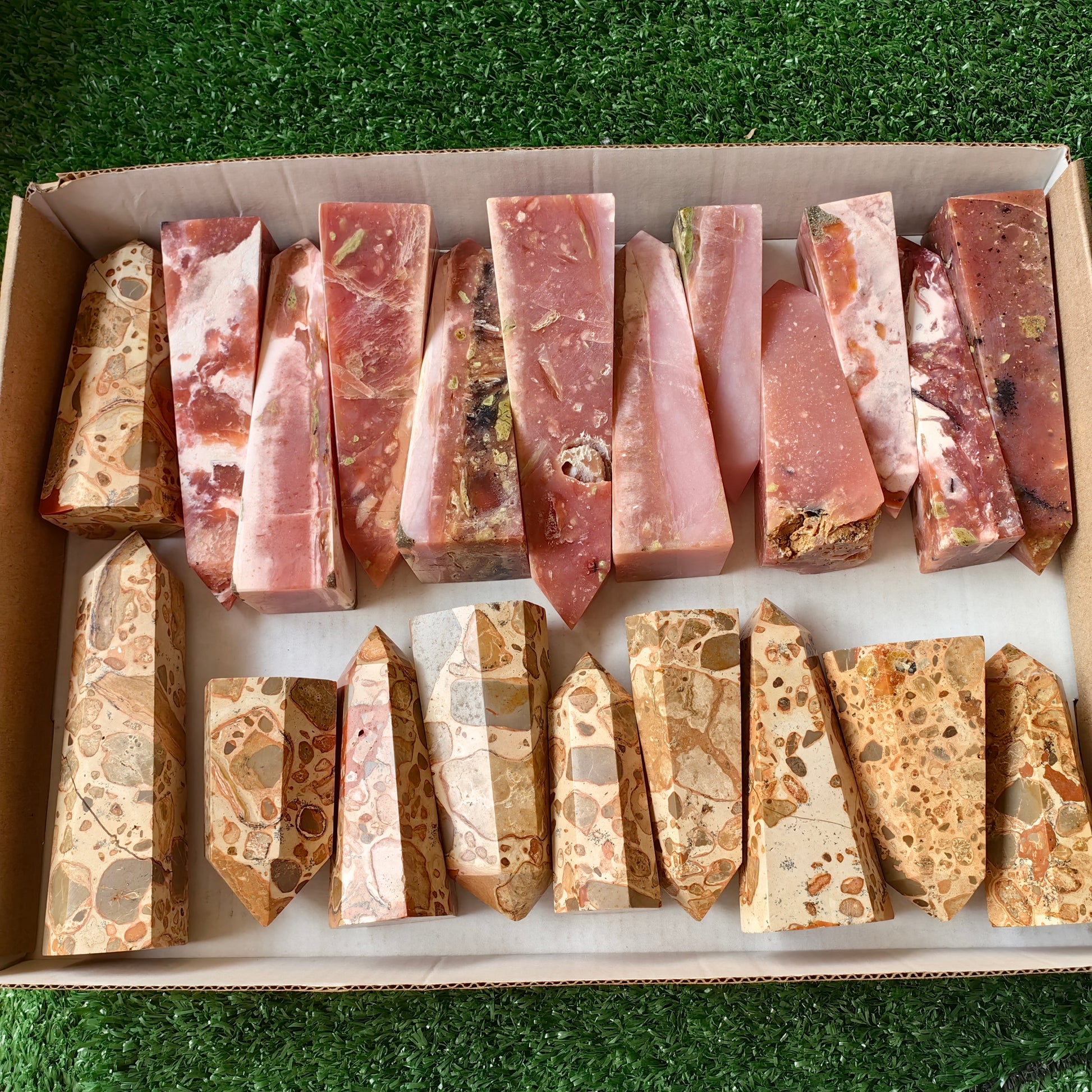 21 pc peruvian pink opal & jasper leopardite towers