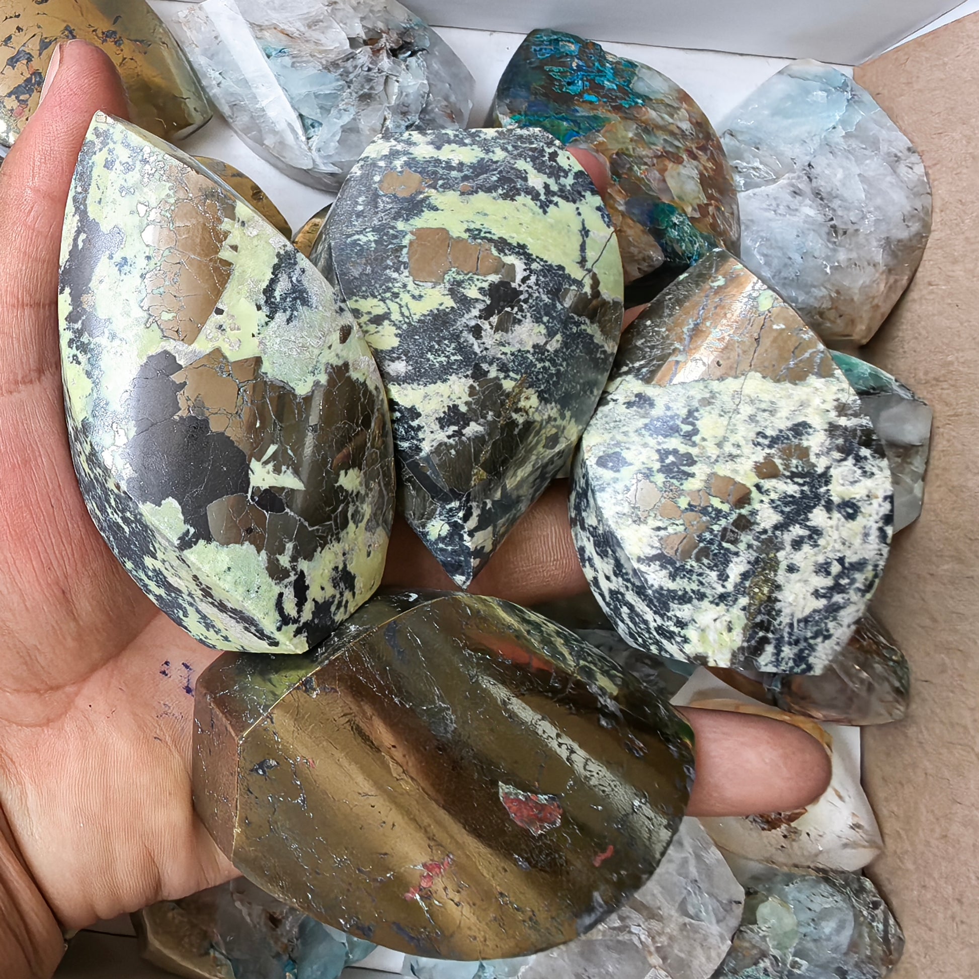 24 pc chrysocolla quartz, serpentine & chalcopyrite flames