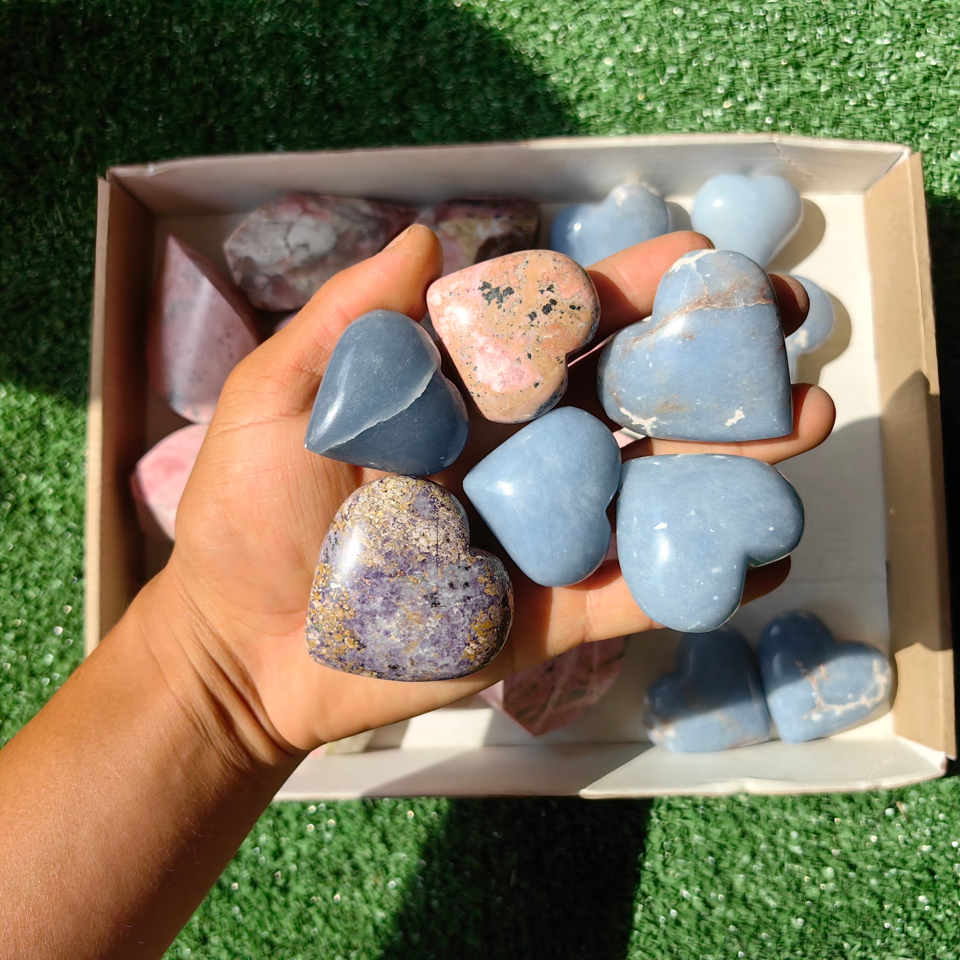 24 pc hearts & flames angelite, pink opal & rhodonite