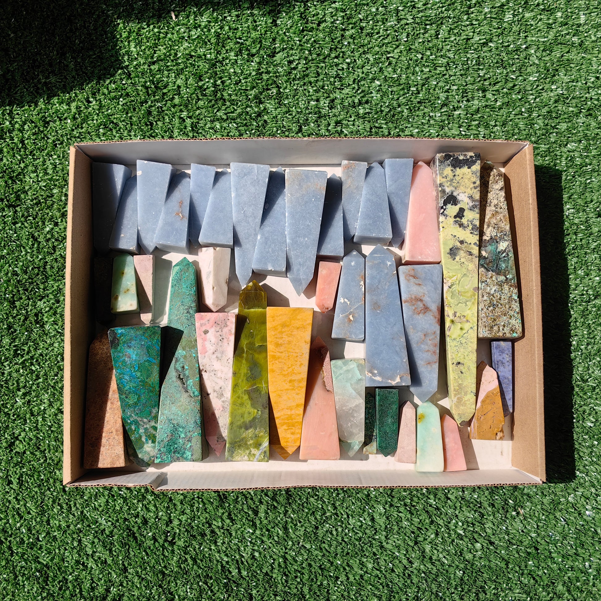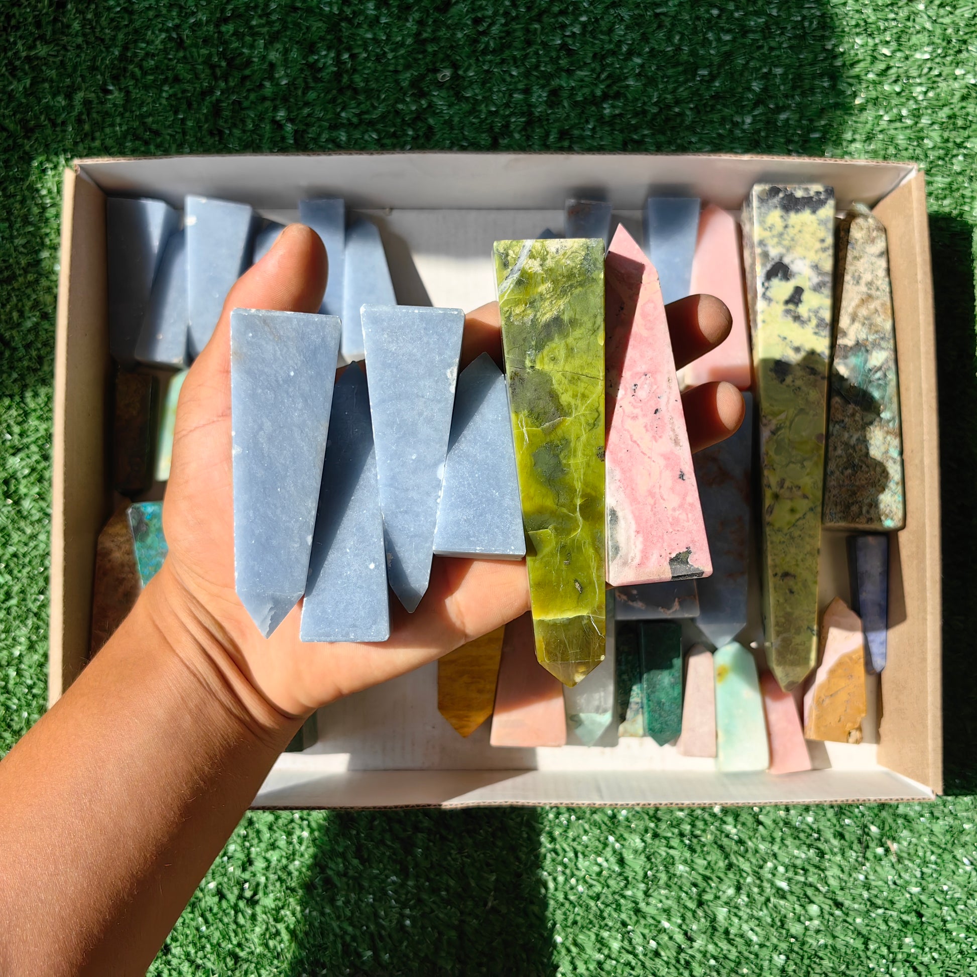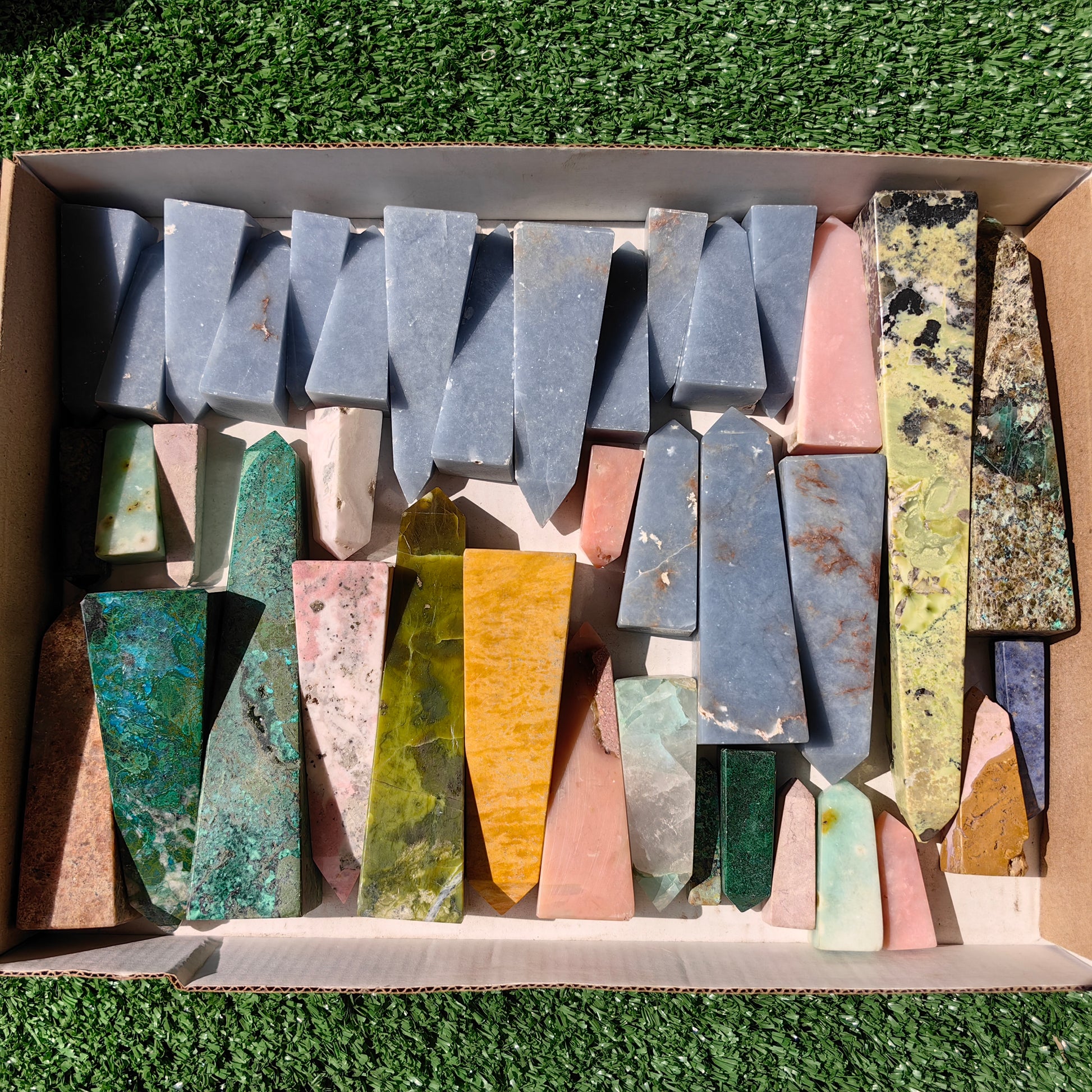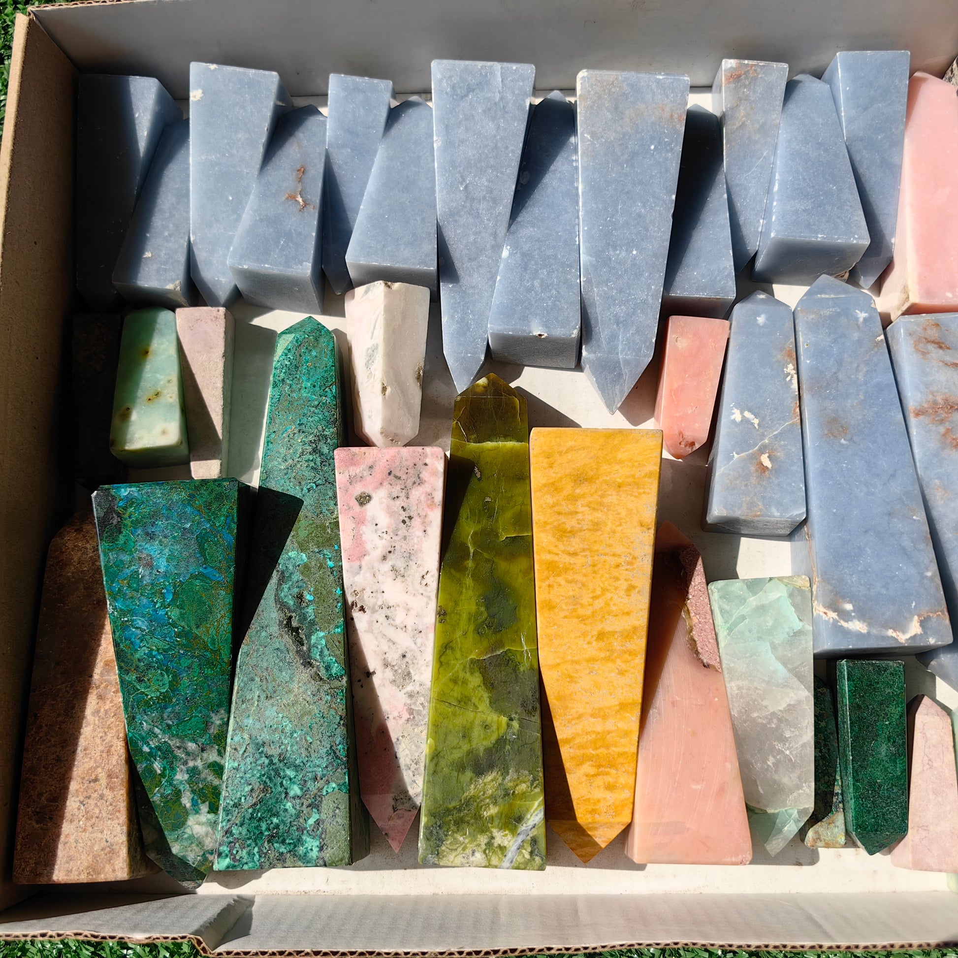 40 pc towers angelite, chrysocolla, pink opal & serpentine