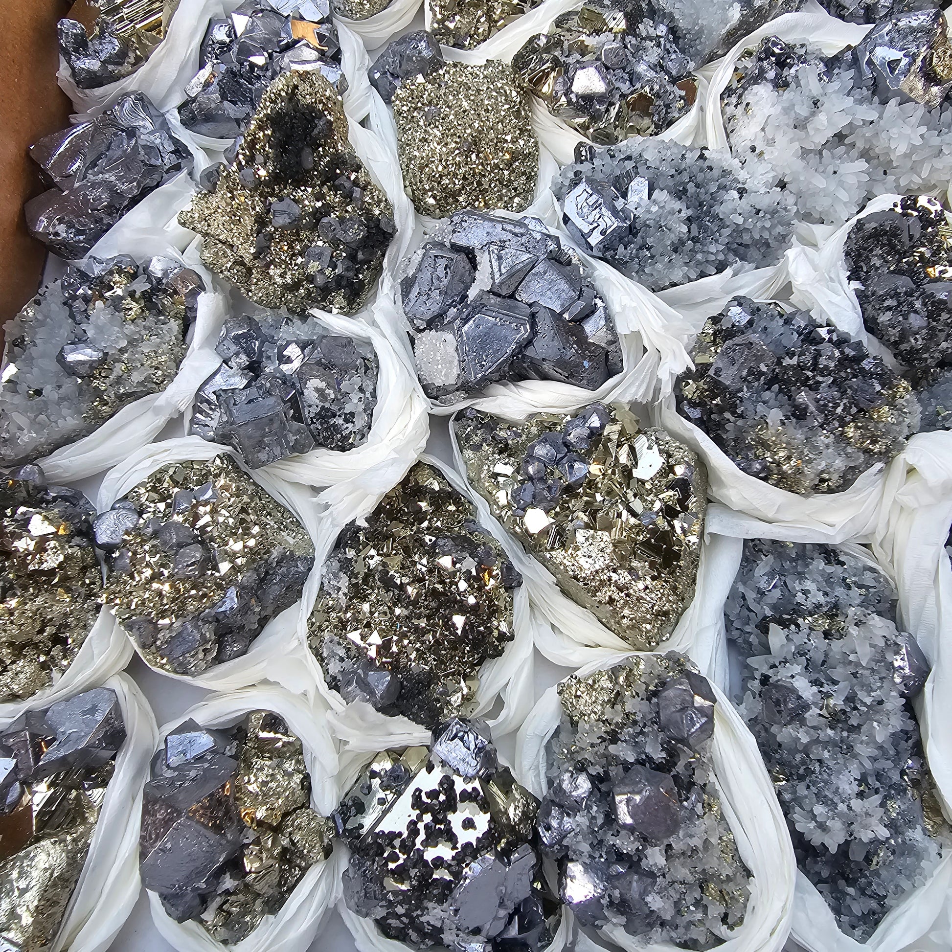 Exceptional crystallized Galena crystals on octahedral pyrite,