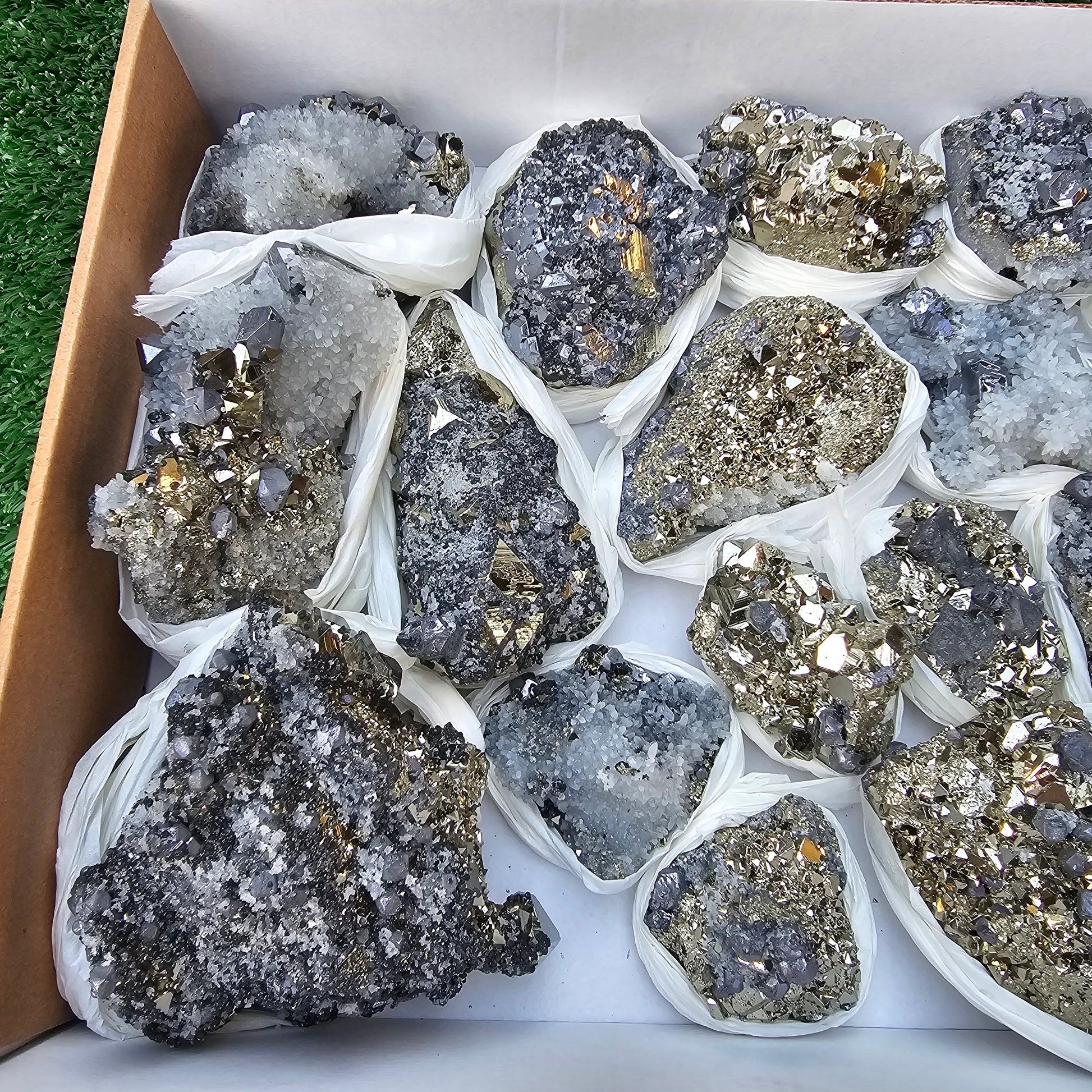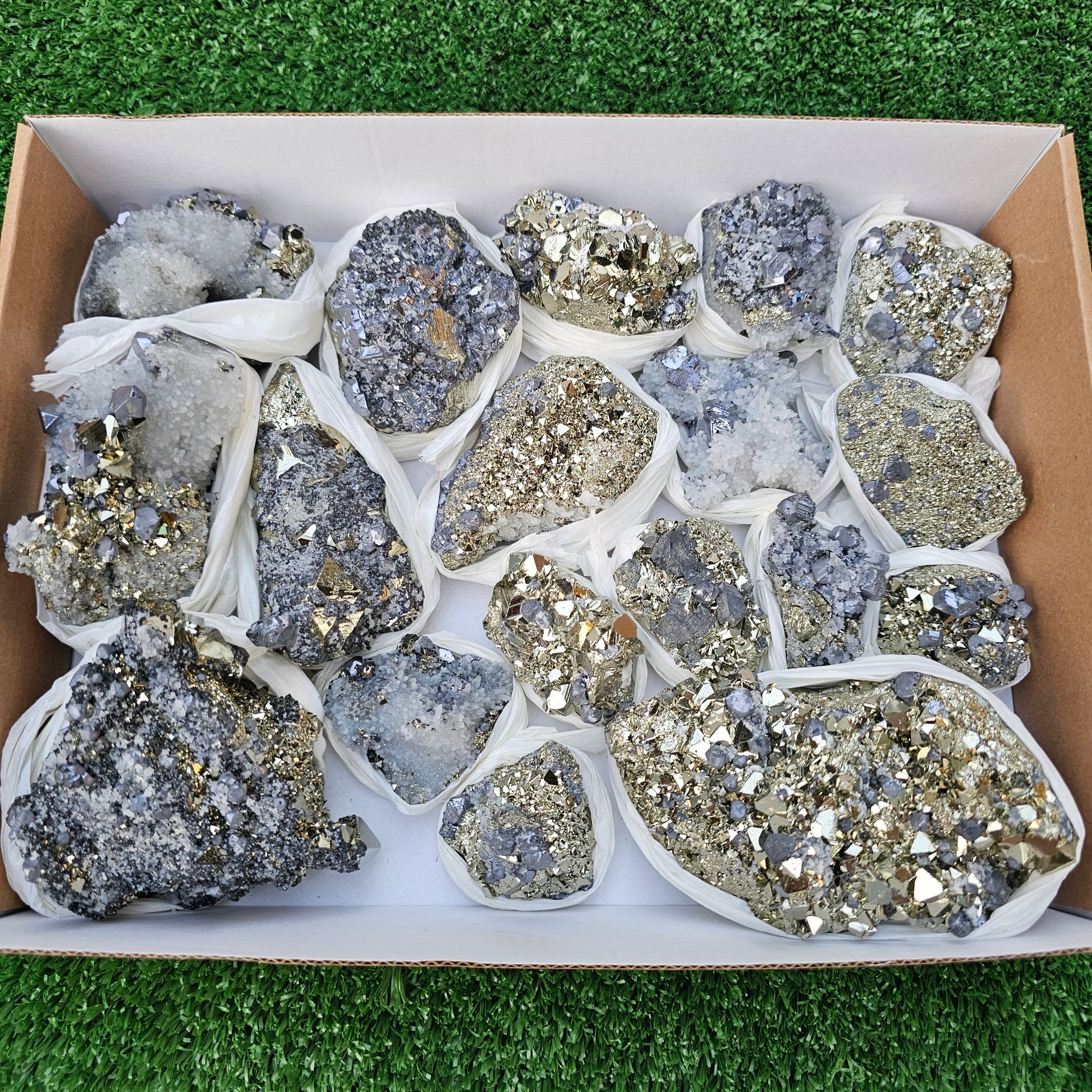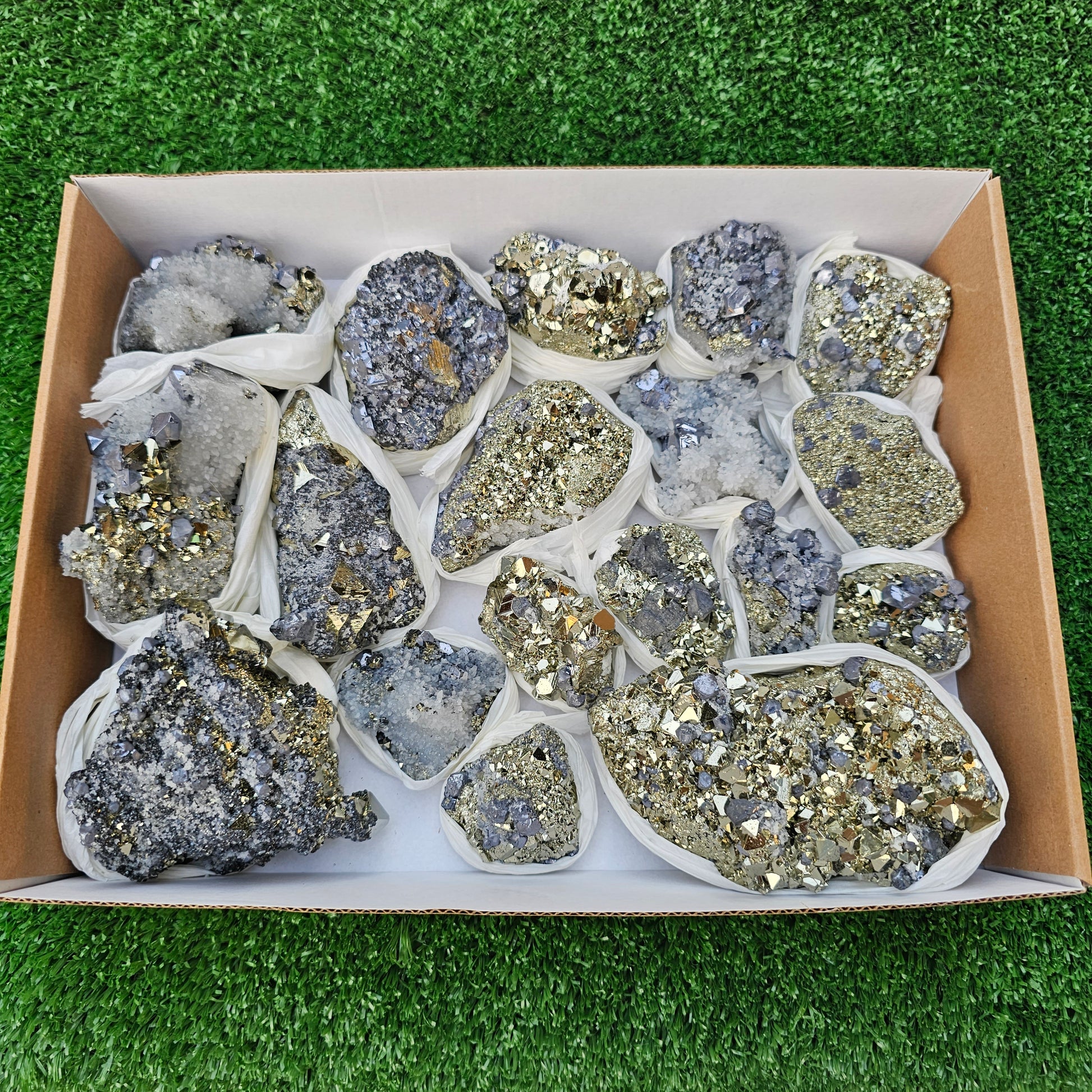 18 pc Galena crystals on octahedral pyrite