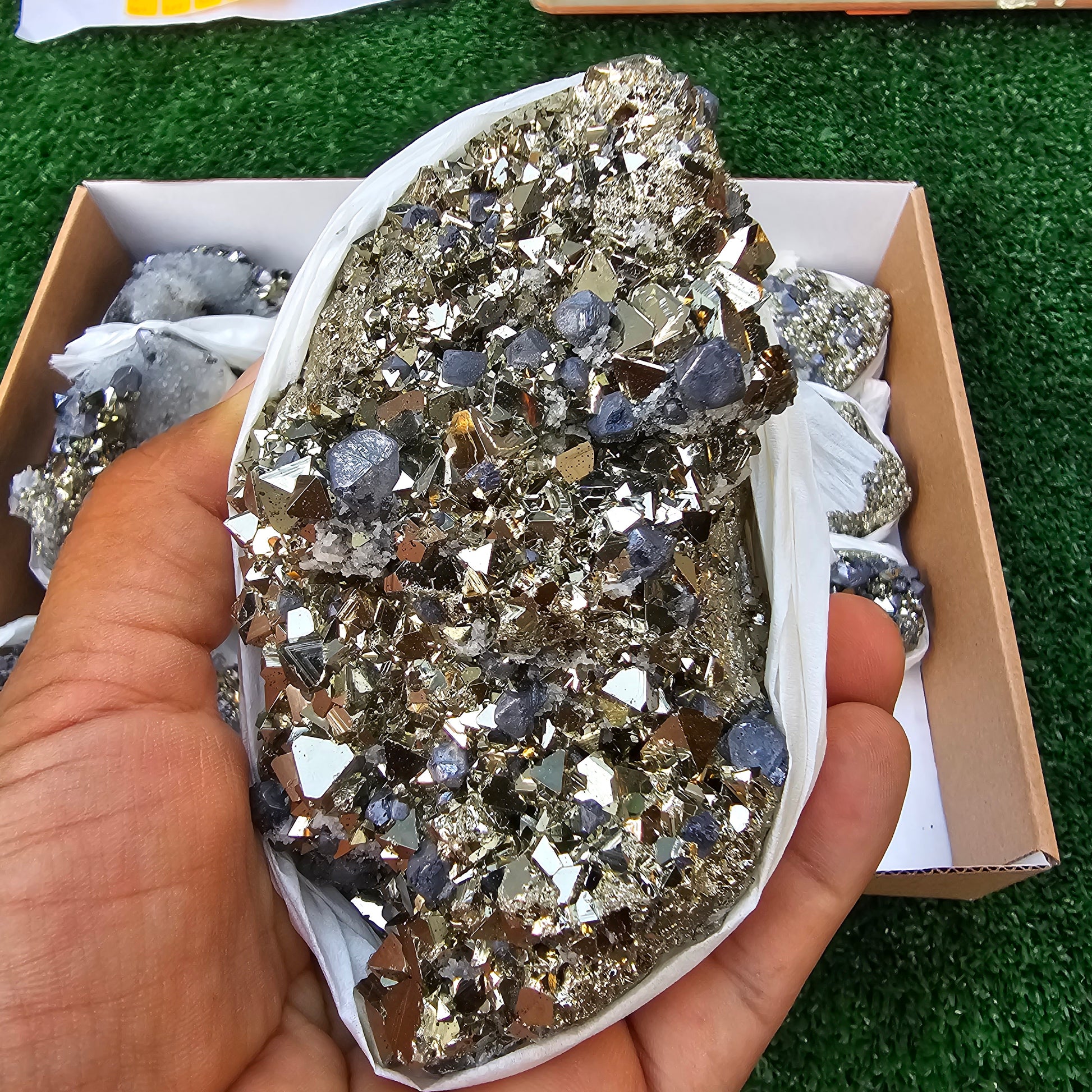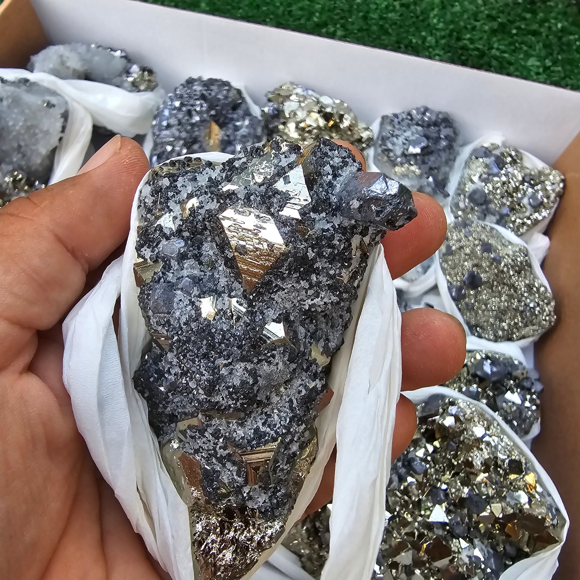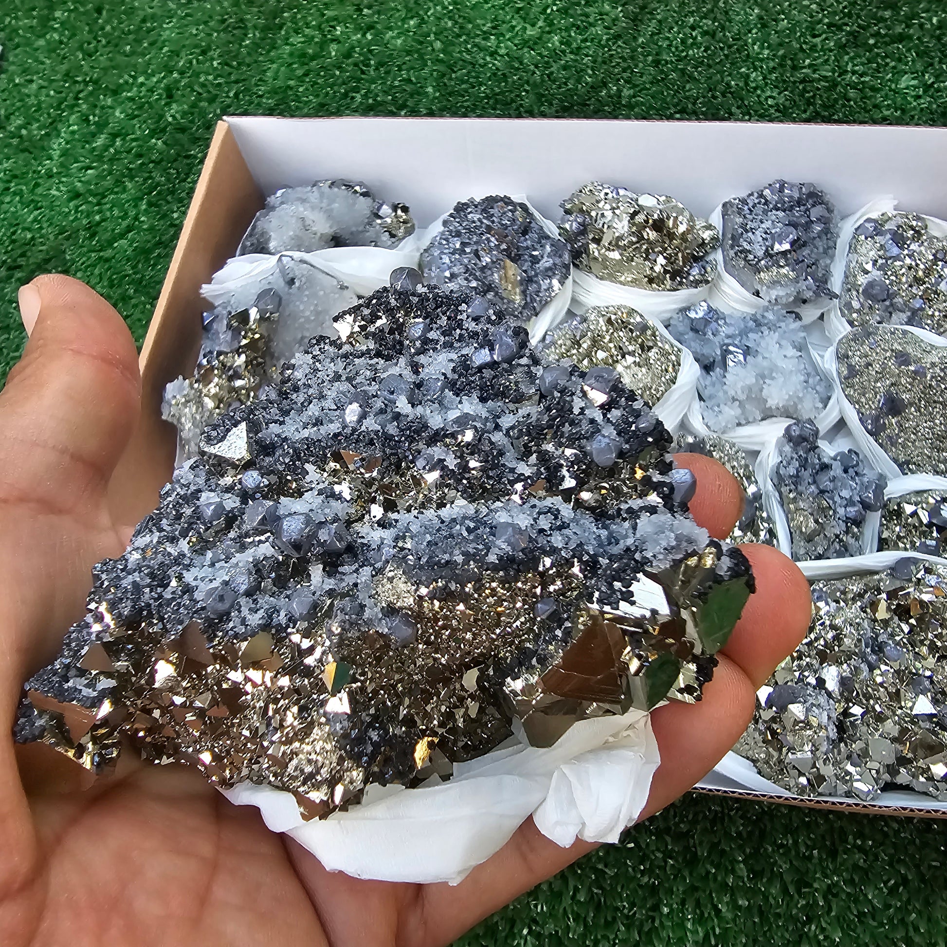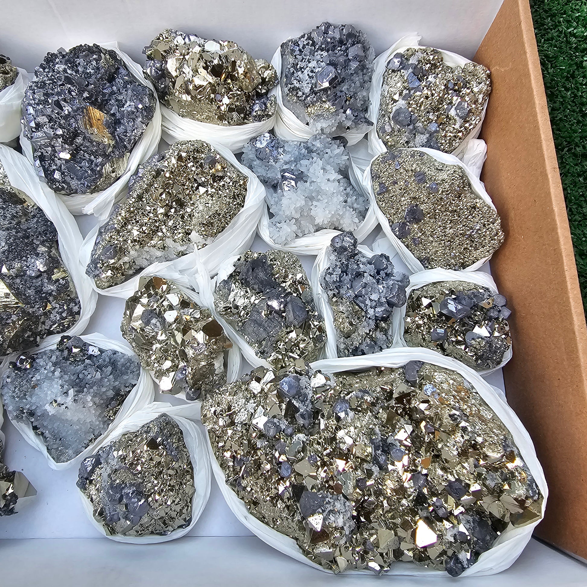 18 pc Galena crystals on octahedral pyrite