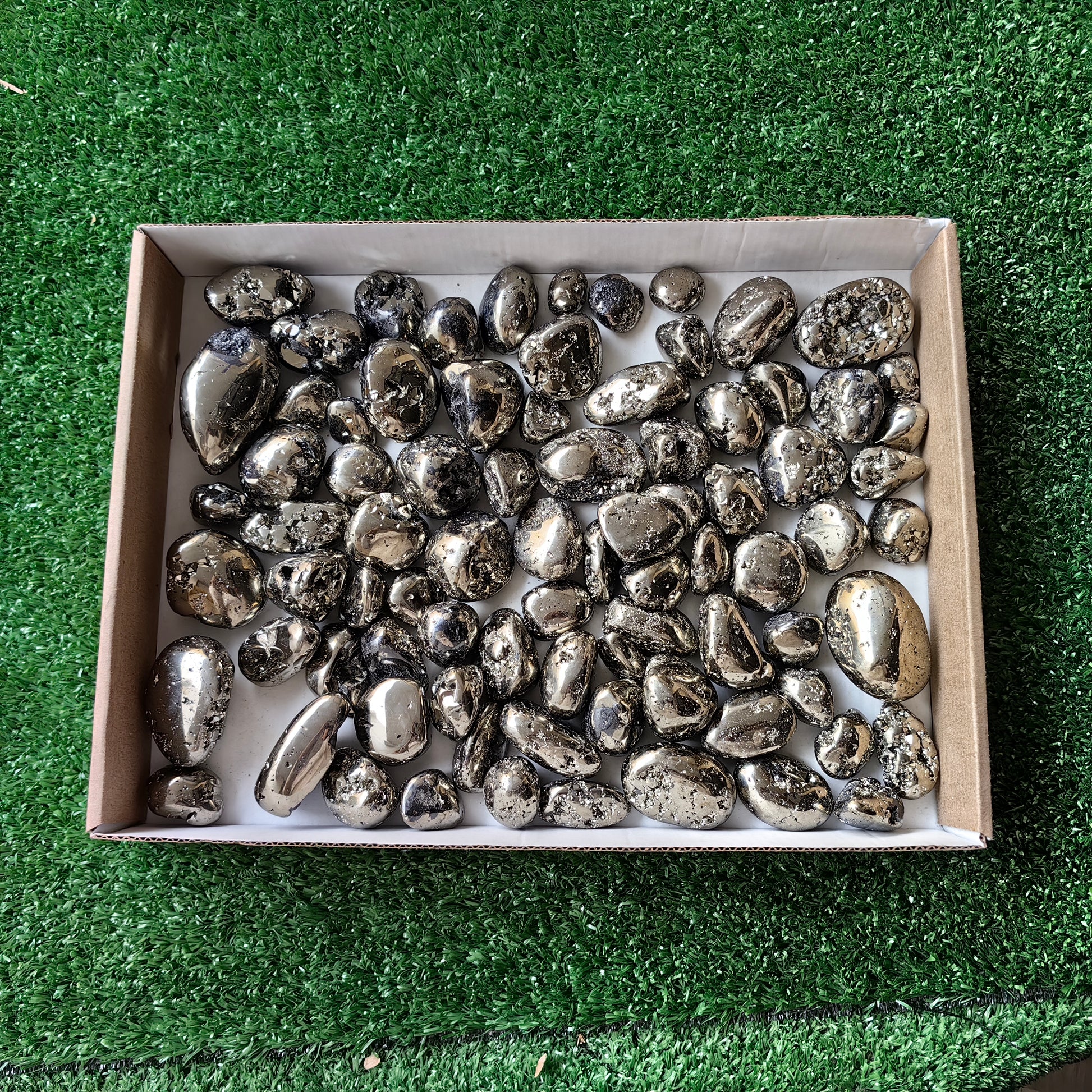 82 pc pyrite tumbled with octactahedral & sphalerite drusy