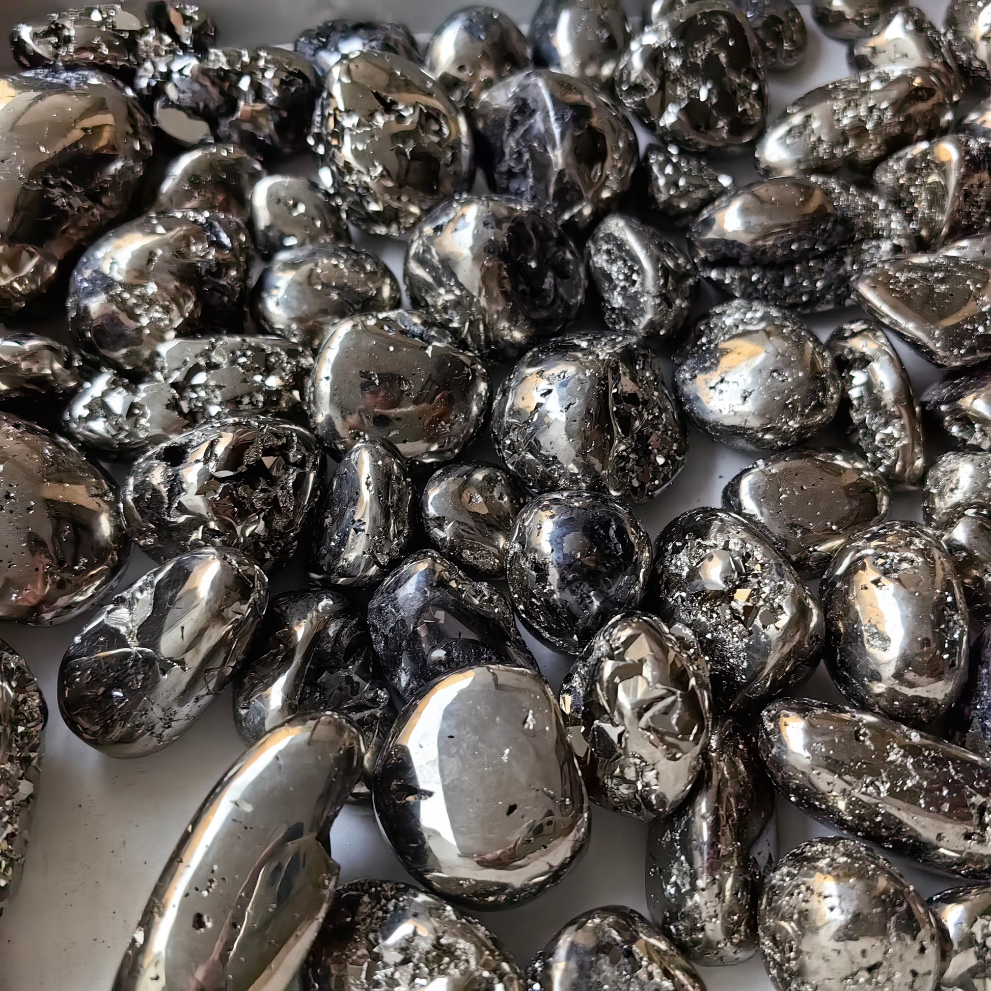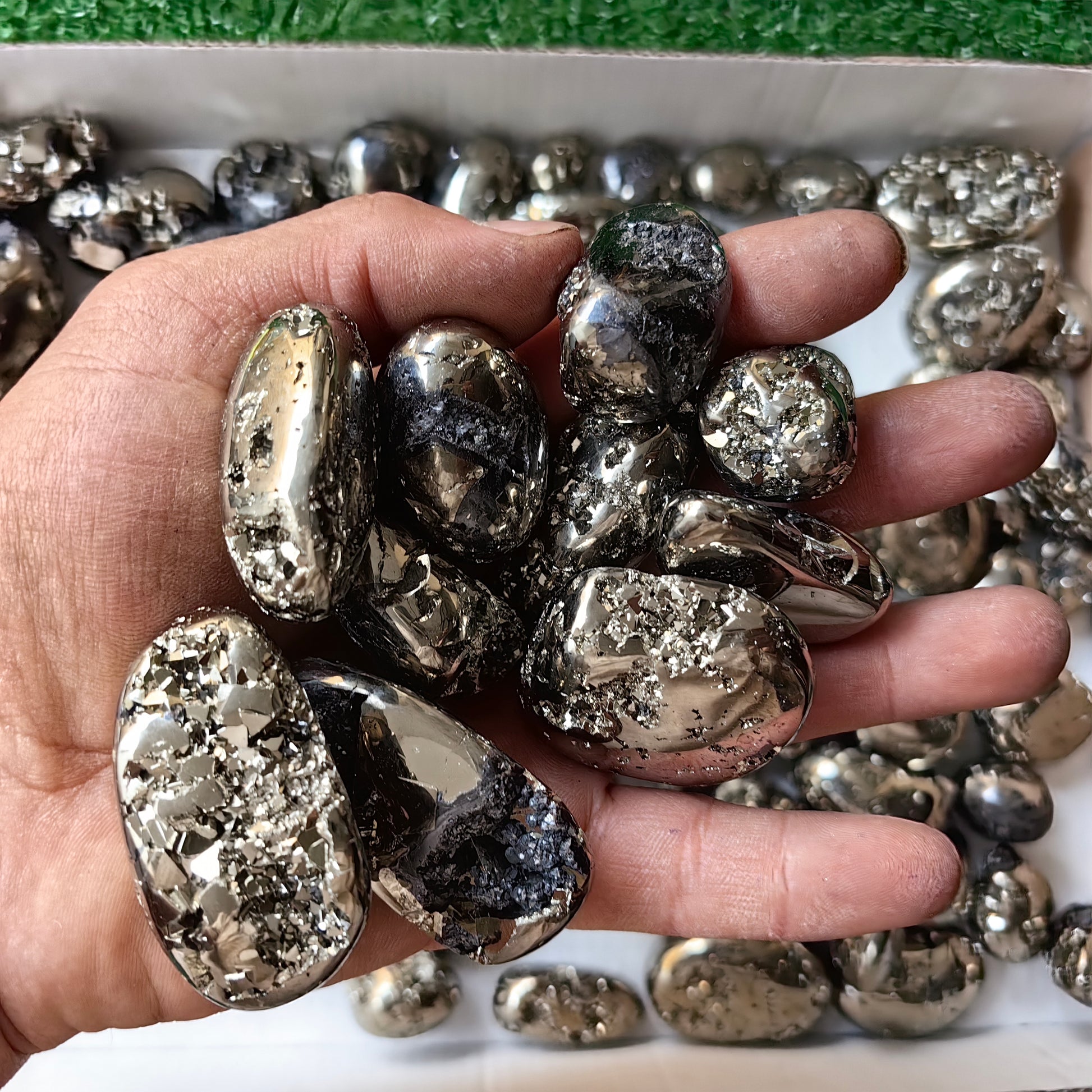 Item: pyrite tumbled with octactahedral & sphalerite drusy