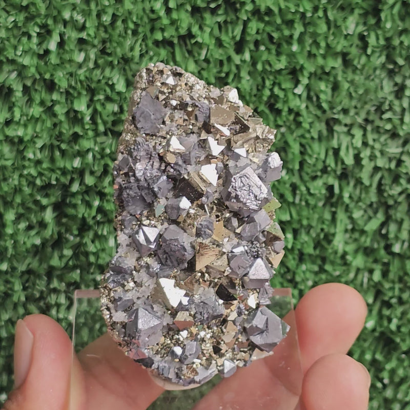 he piece features a stunning formation of GALENA crystals,