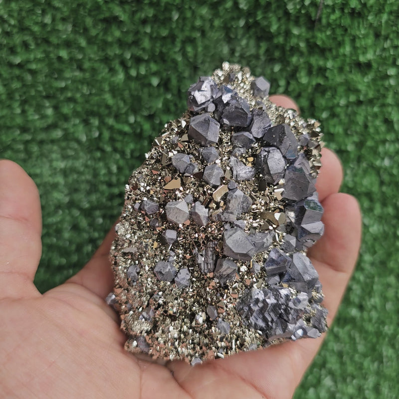 he piece features a stunning formation of GALENA crystals,