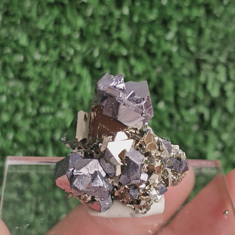 This is beautiful Pyrite Octahedral crystals. It comes from the Huanzala Mine in Peru, The pyrite crystals formed in association with iron.
