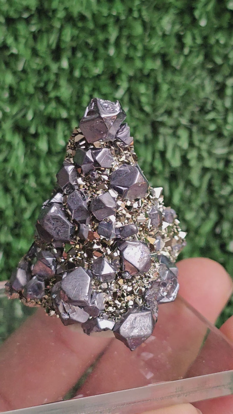 This is beautiful Pyrite Octahedral crystals. It comes from the Huanzala Mine in Peru, The pyrite crystals formed in association with iron.