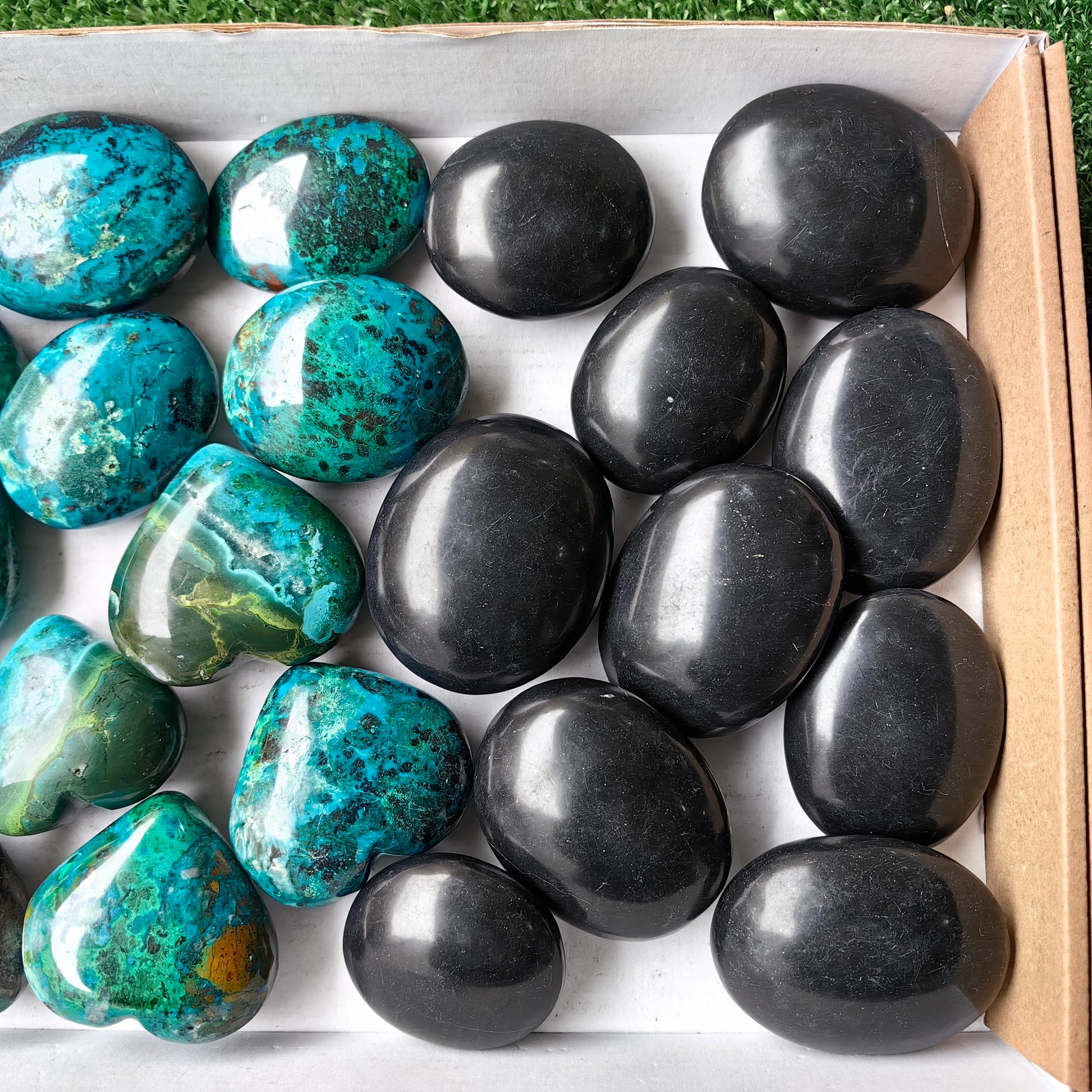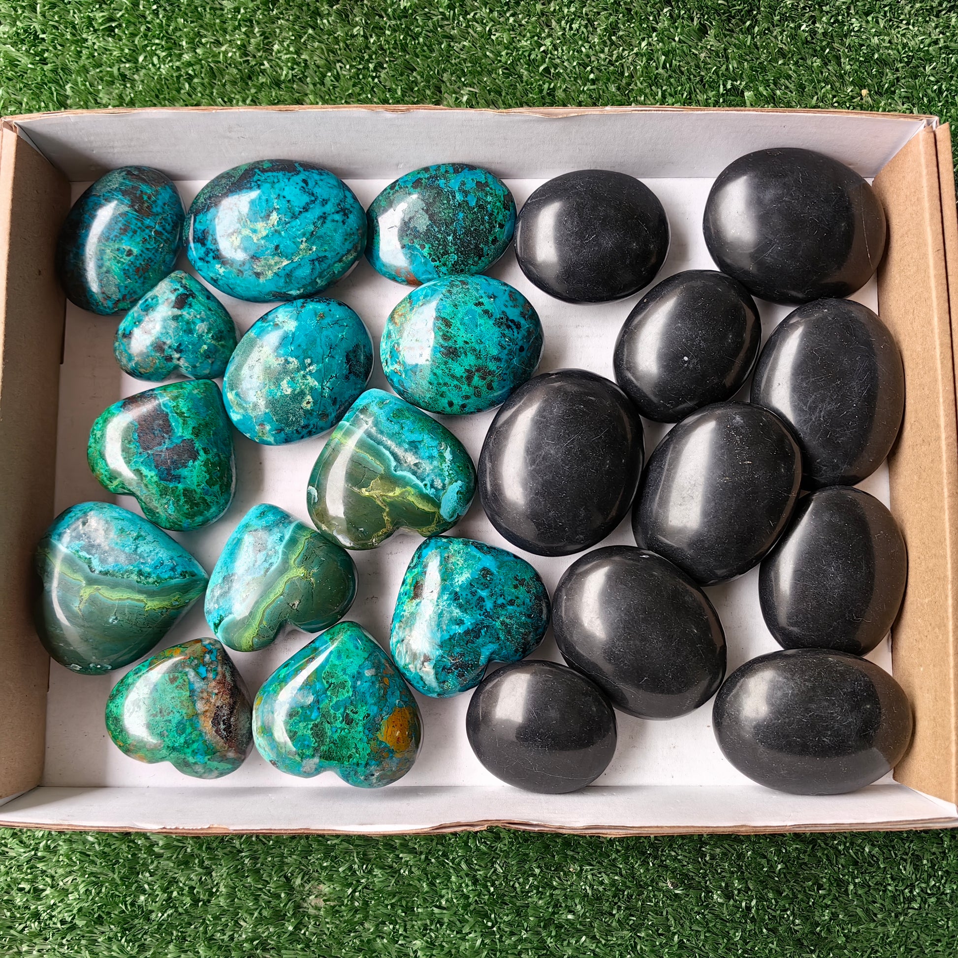 Lot 18 pcs Chysocolla Heart, Onix Black Palm