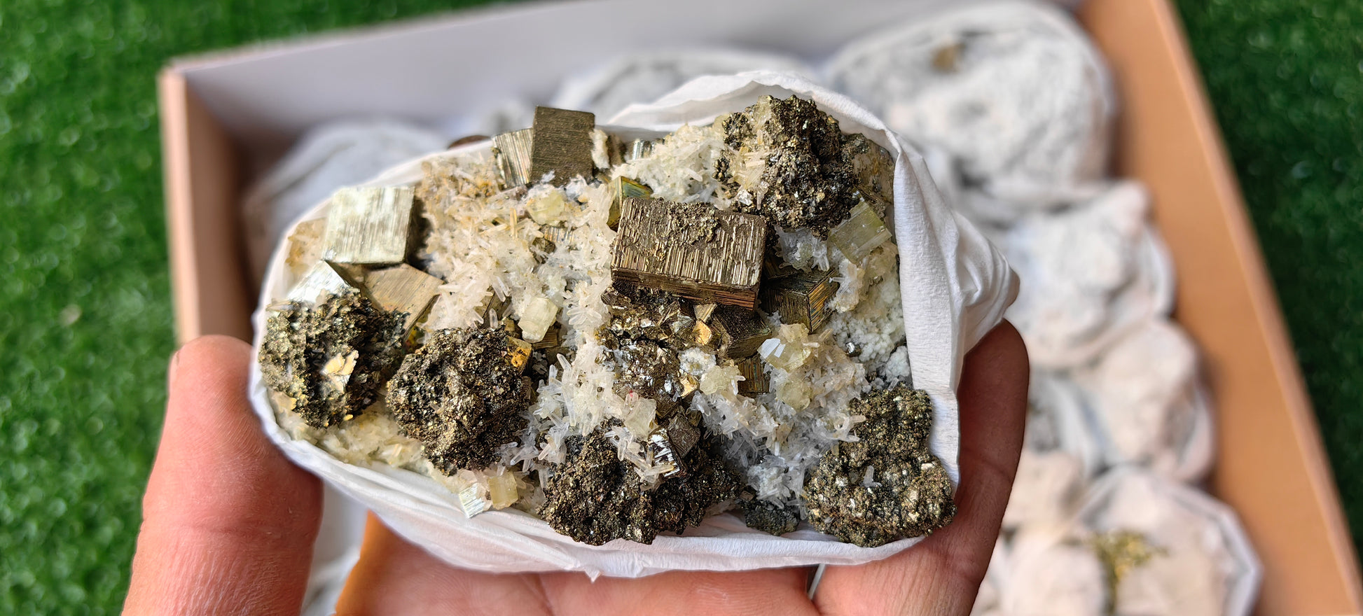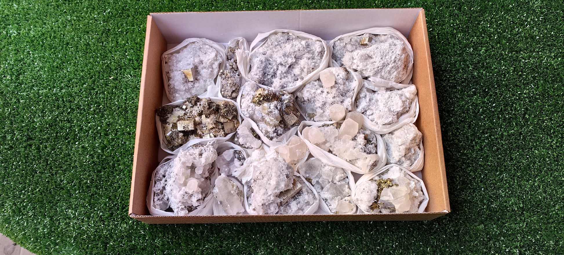 Lot 18 pieces calcite fluorescent chalcopyrite and pyrite*