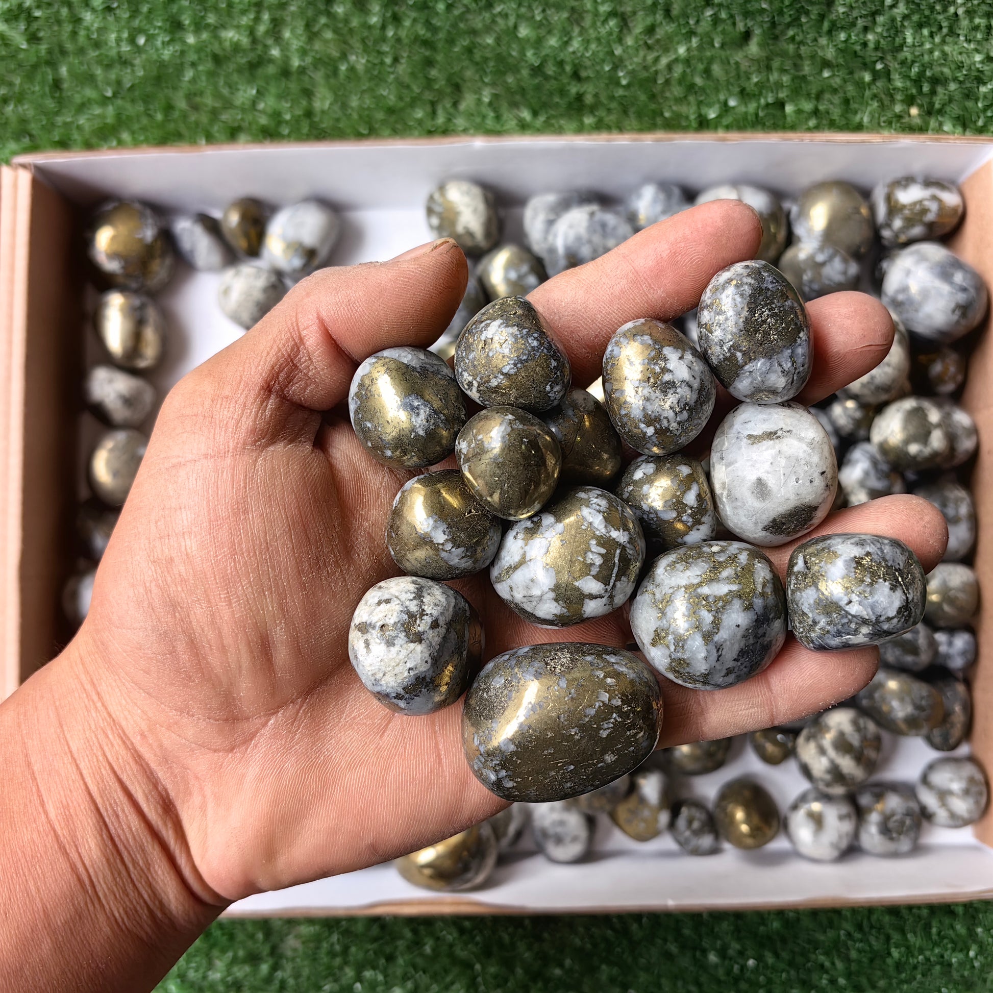 Lot 2.8 kg Chalcopyrite on Quartz Tumbled