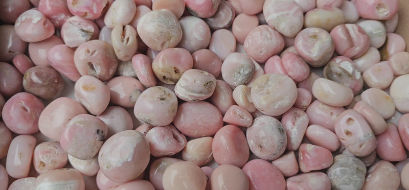 Pink Opal is a type of Common Opal that is generally opaque and does not show the “fire” like that of Precious Opals. The color ranges from a bright baby girl pink to a pink-white, cream, or even lavender. Over the course of time Pink Opal has adopted the nickname “Peppermint candy stone”, due to its close resemblances to that of candies. The country of Peru is known to have the brightest and most impressive Pink Opal specimens, but it can also be found in other South American countries, USA, and even Australia. It's very important to not expose your Opal to sunlight, as this stone has water within.