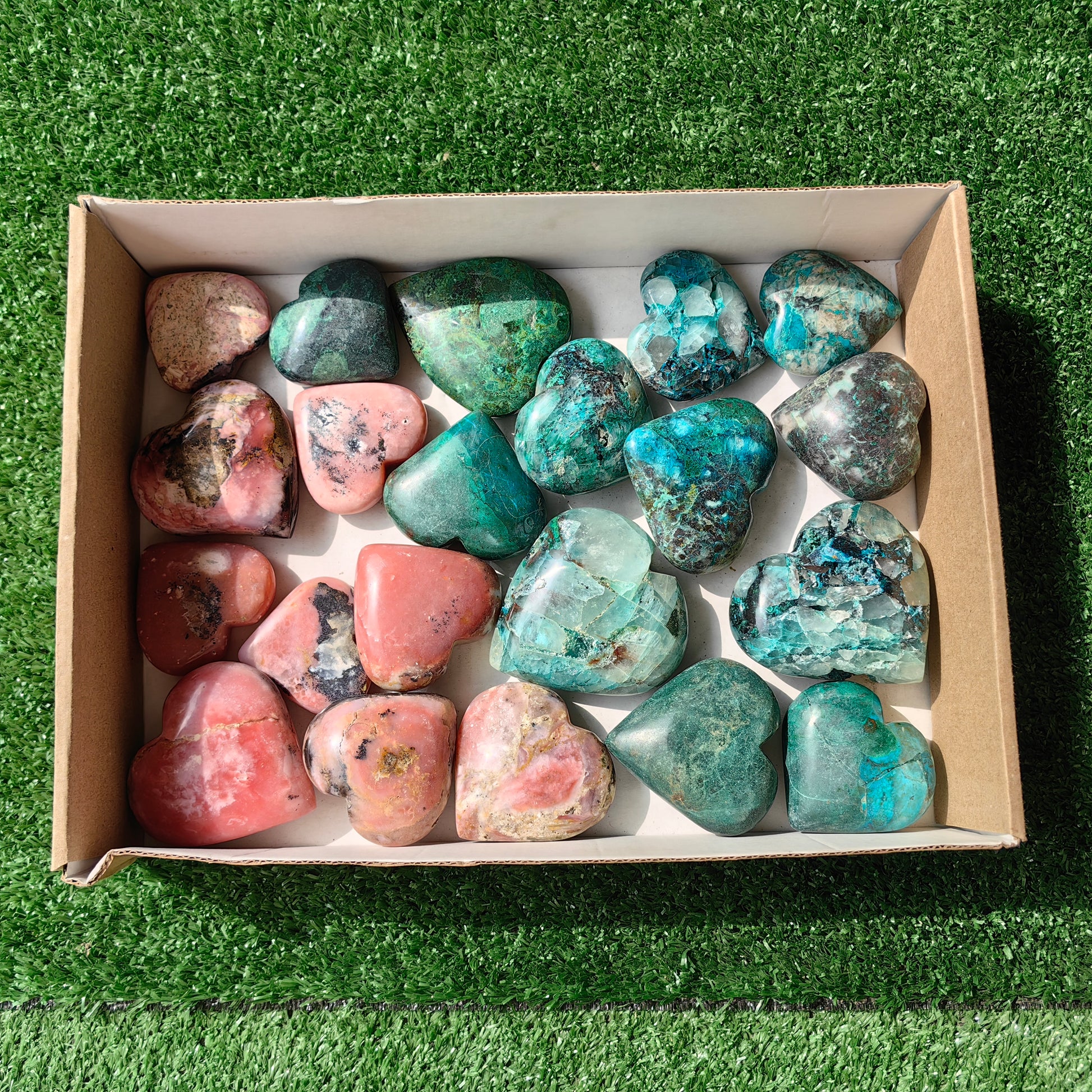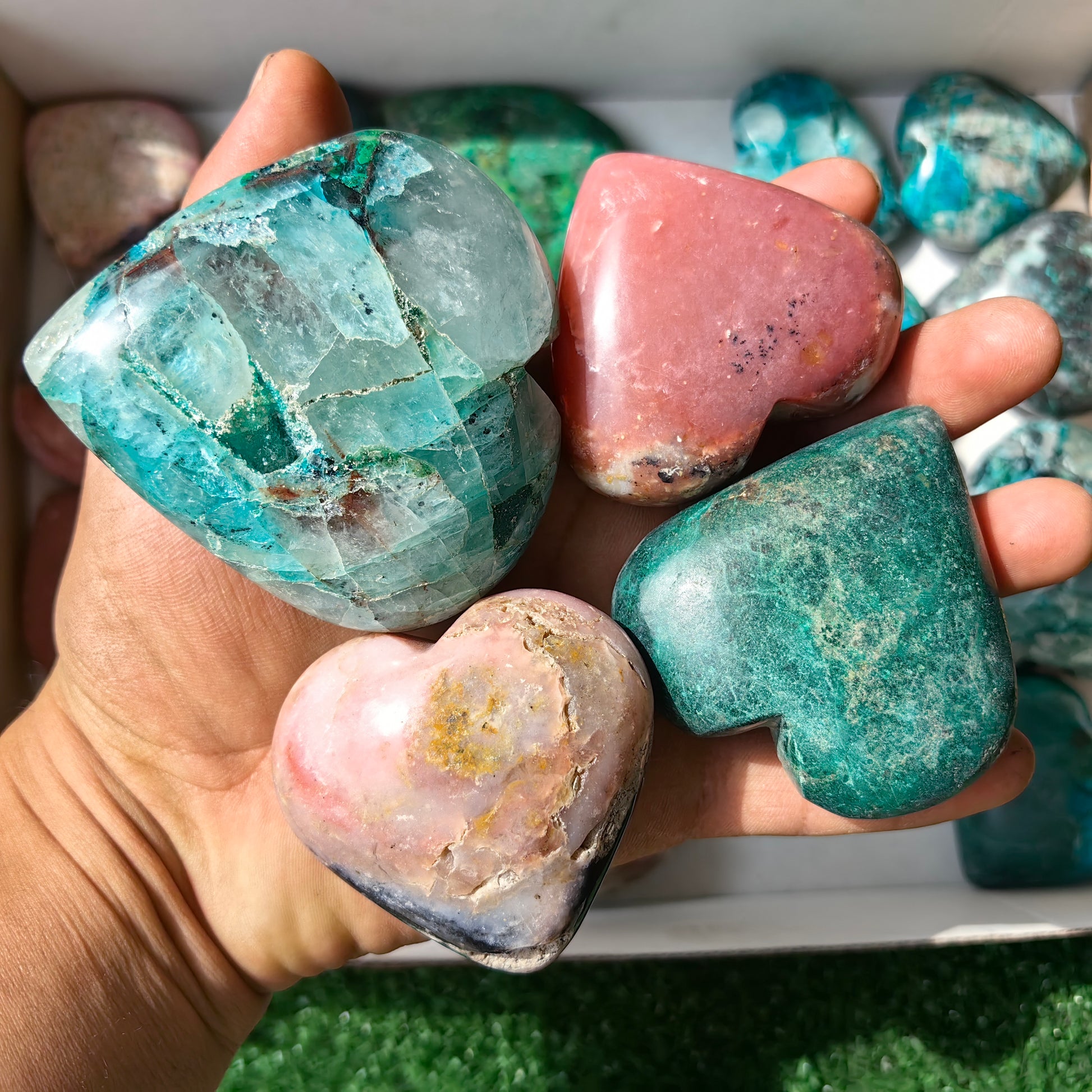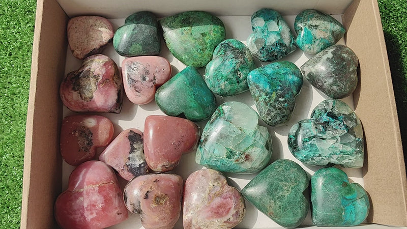 21 pc pink opal & chrysocolla on quartz hearts