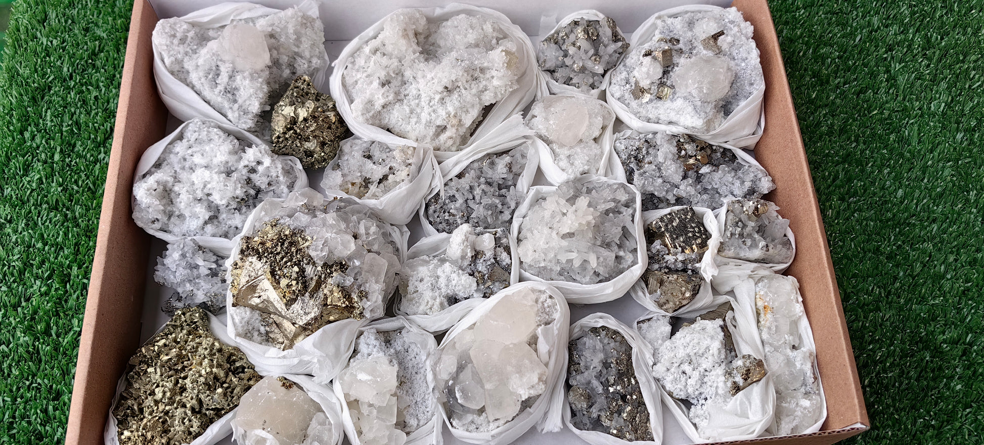 Lot 23 pieces calcite fluorescent chalcopyrite and pyrite*