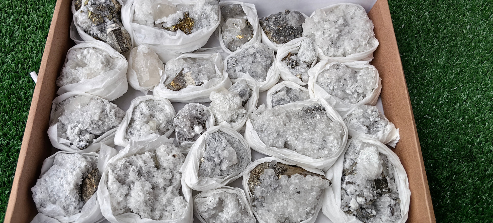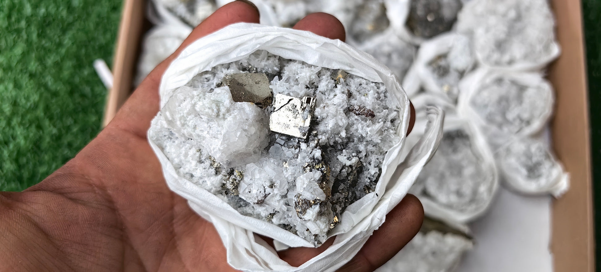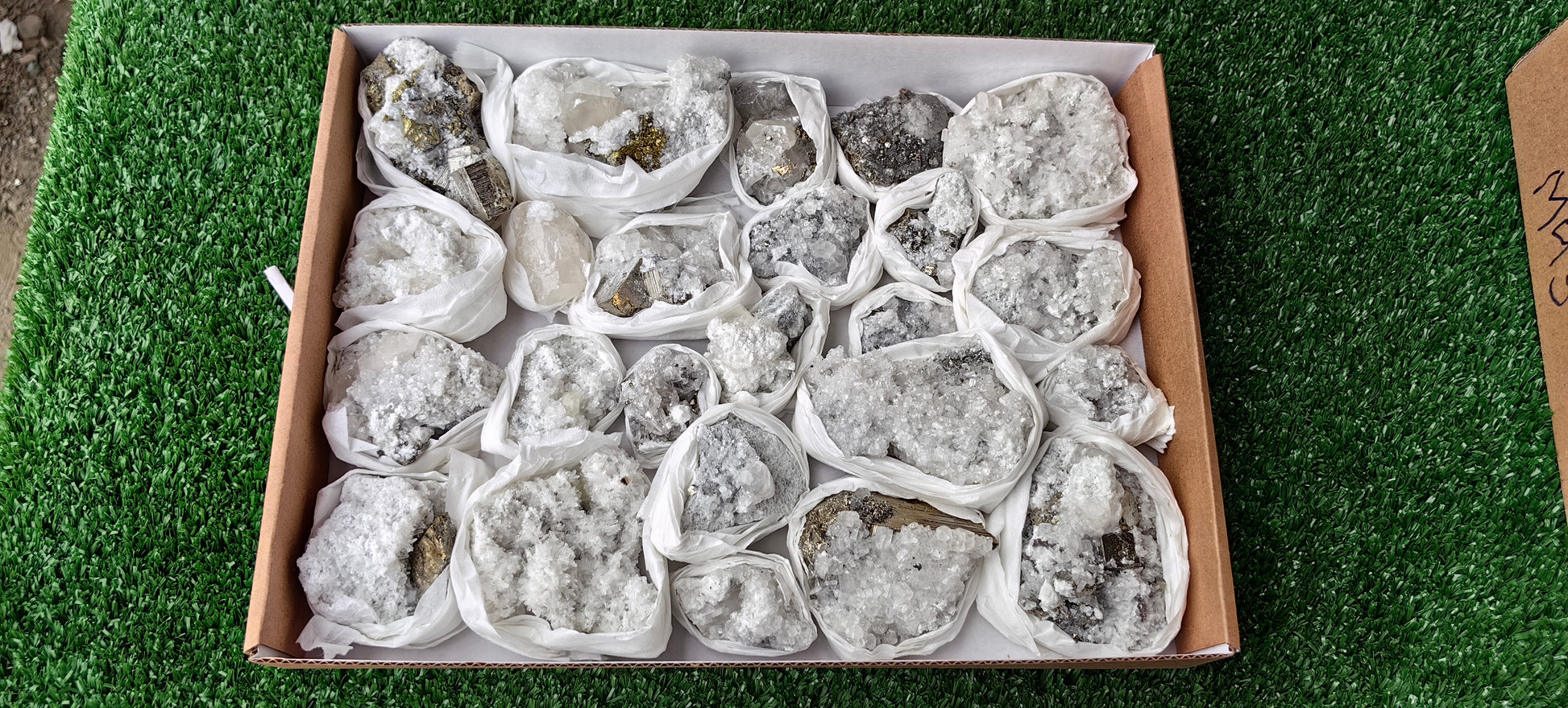 Lot 24 pieces calcite fluorescent chalcopyrite and pyrite*