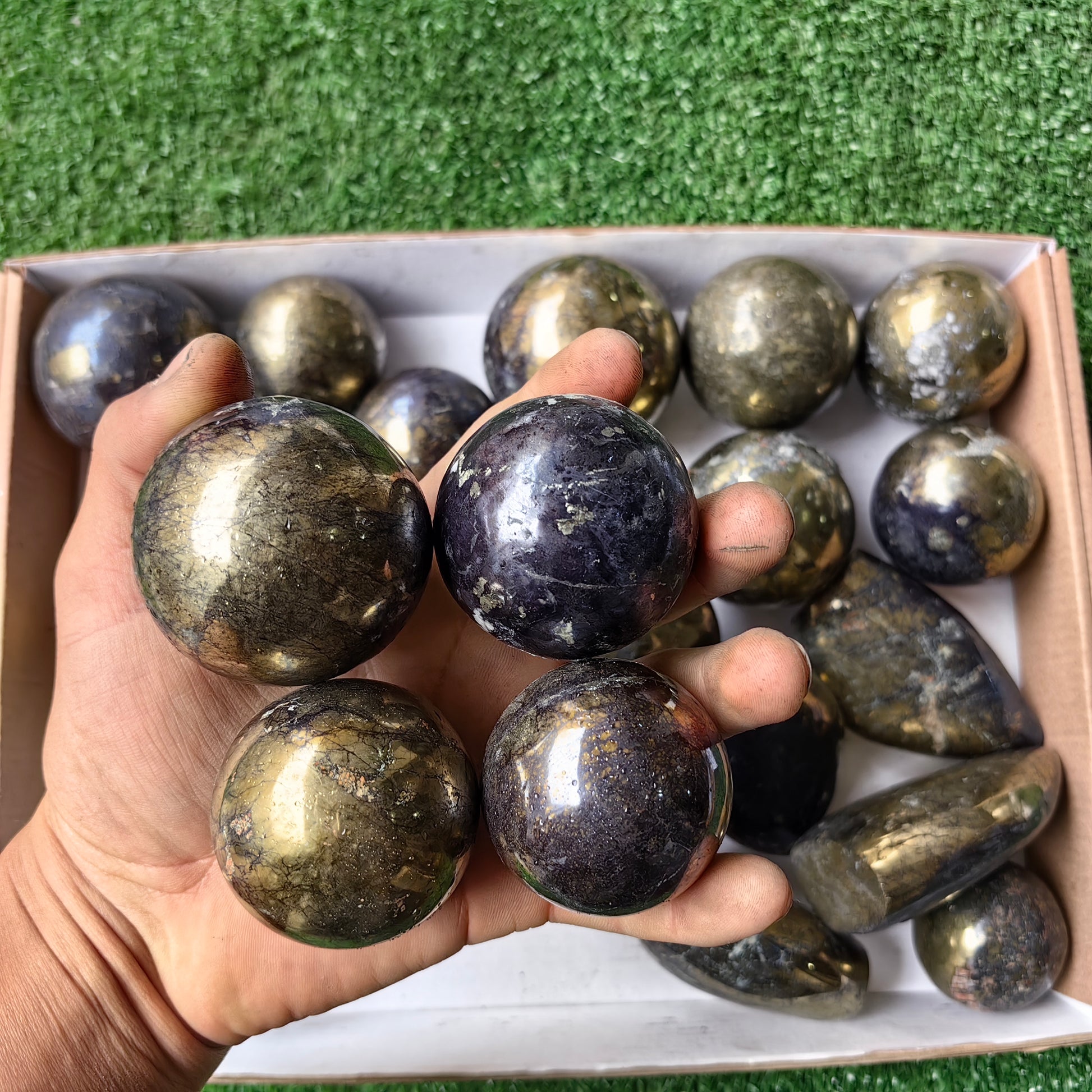 Lot 25 pcs Covellite on Chalcopyrite Sphere and Flame
