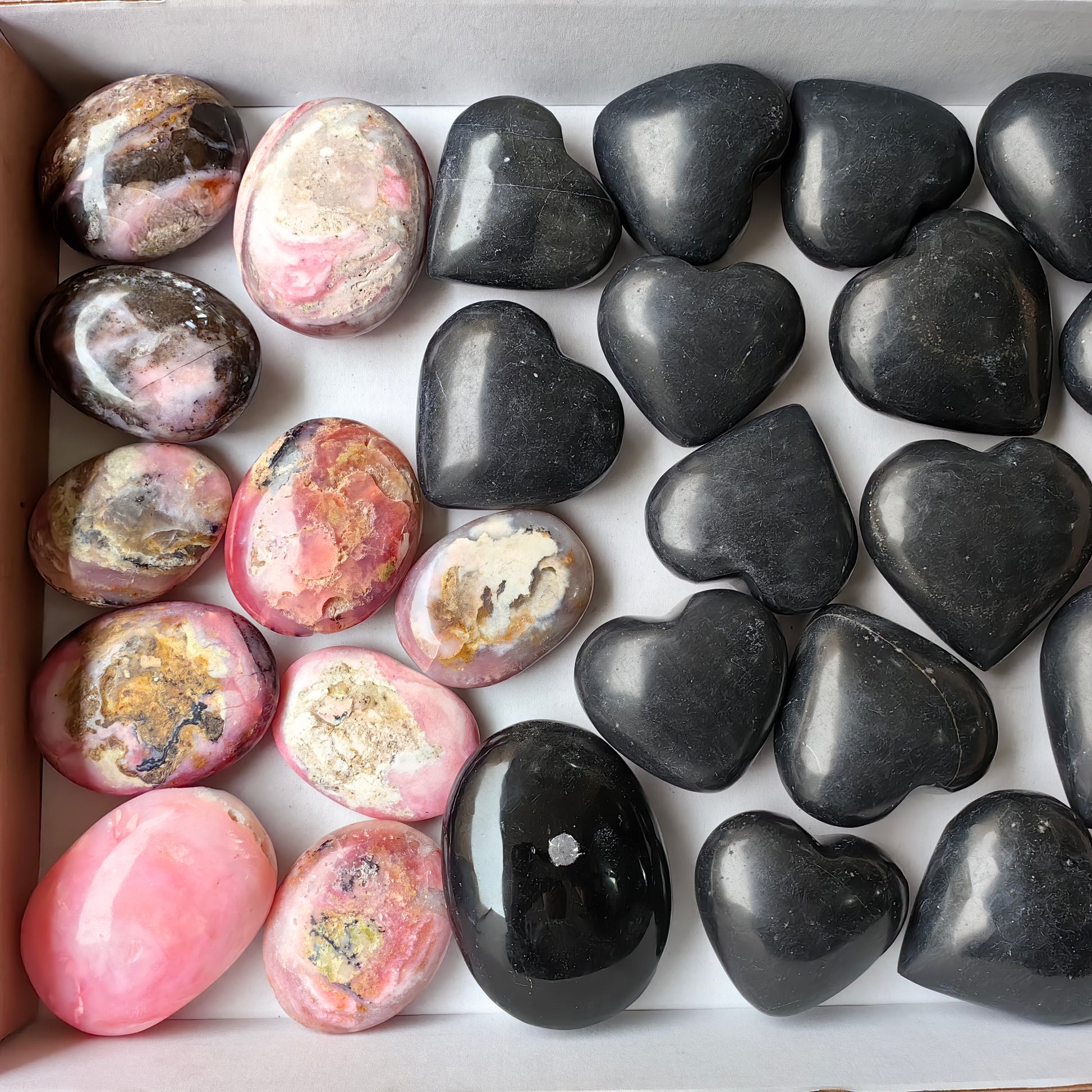 Lot 27 pcs Black Onix Heart and Pink Opal Palm