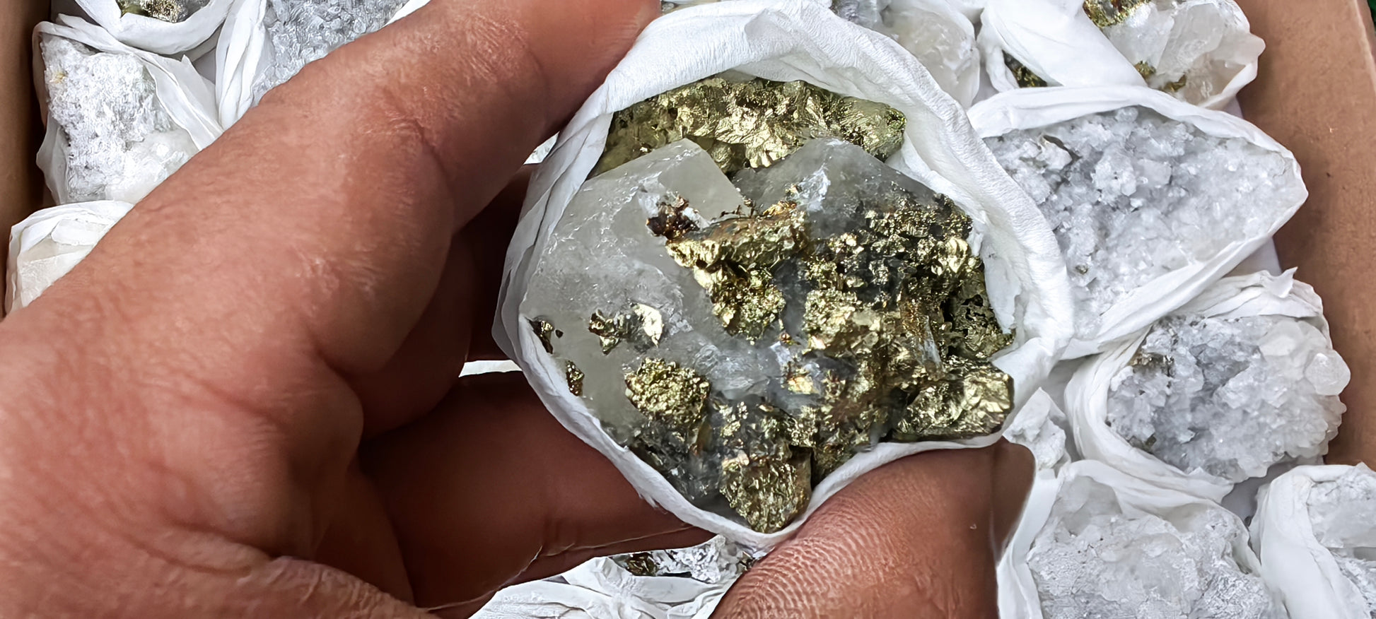 Lot 27 pieces calcite fluorescent chalcopyrite and pyrite*