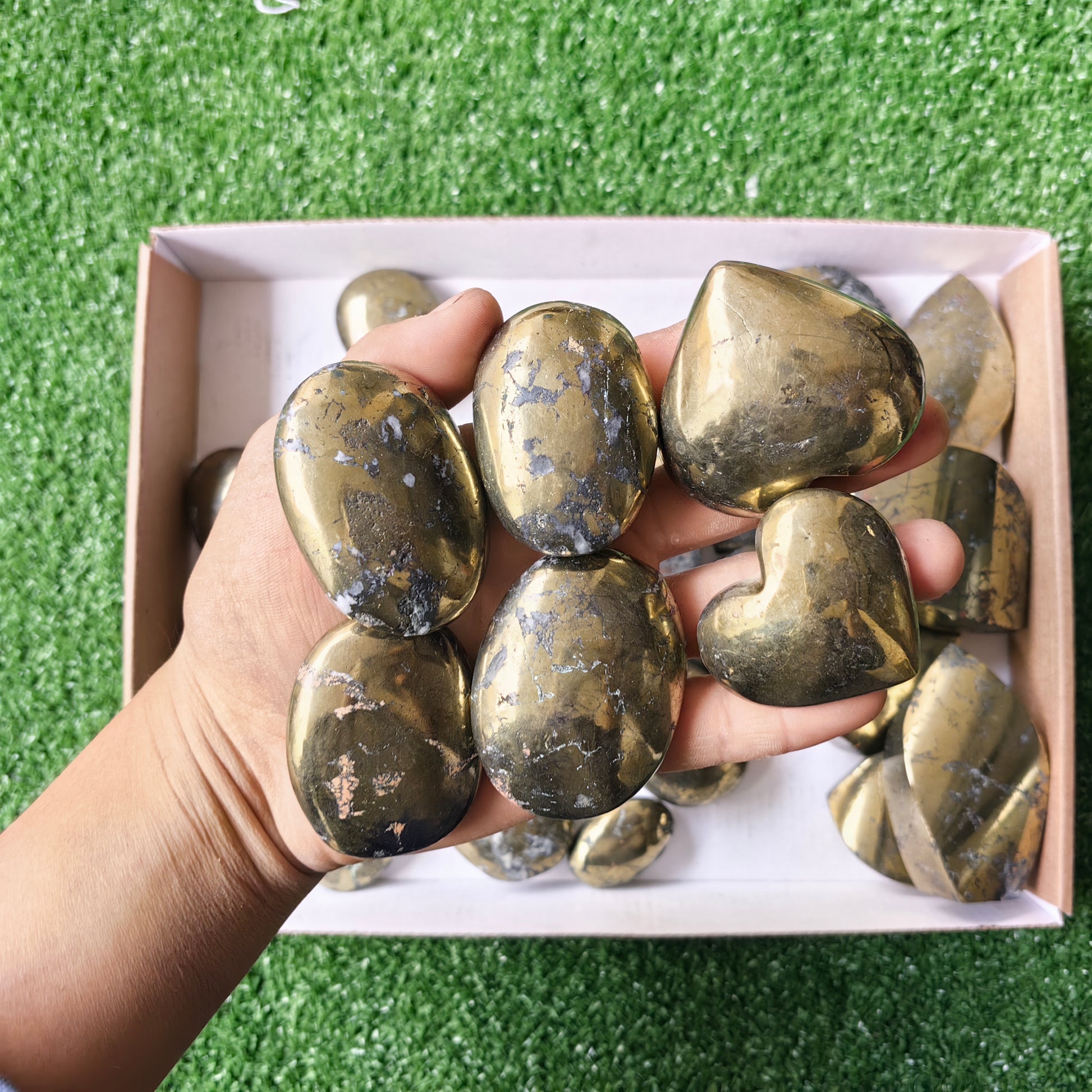 Lot 28 pcs Chalcopyrite Palm and Heart
