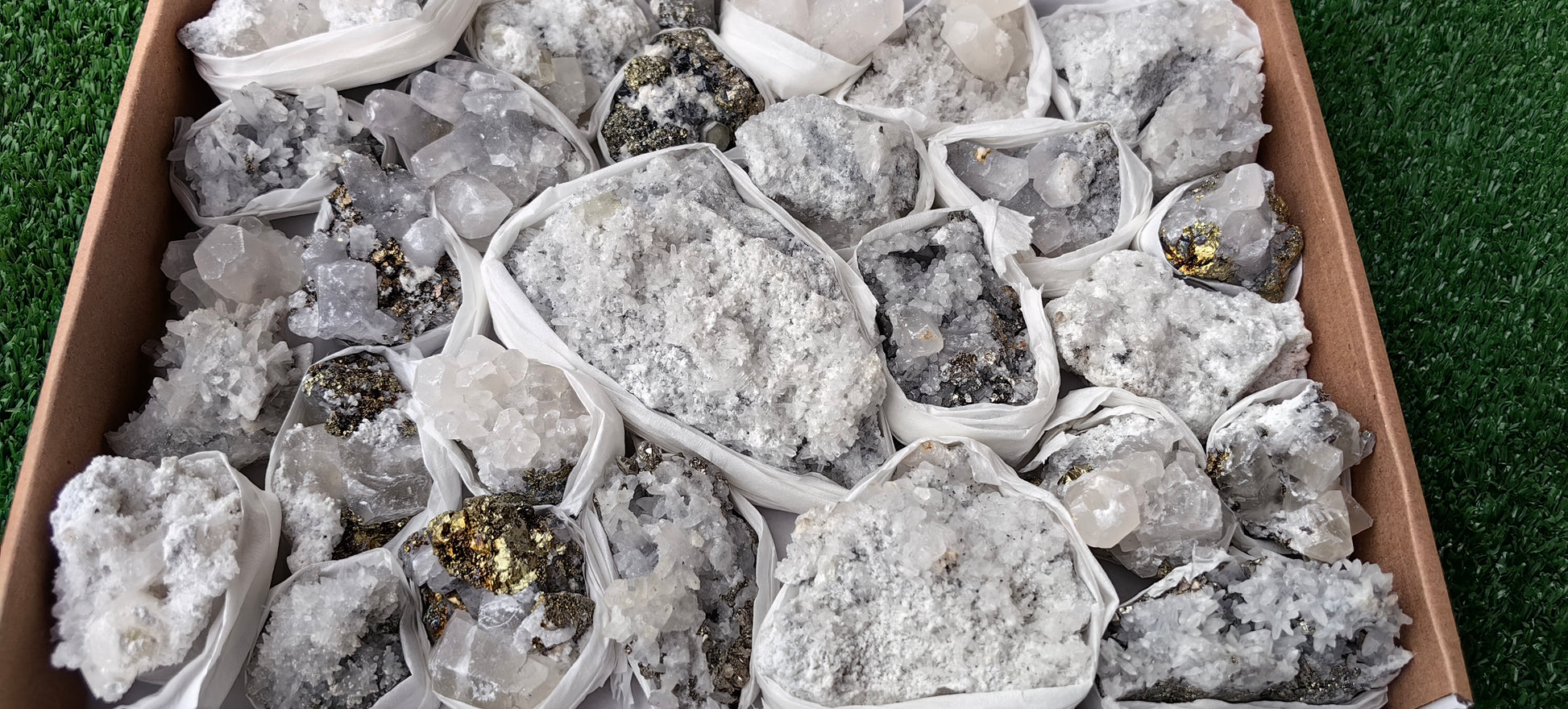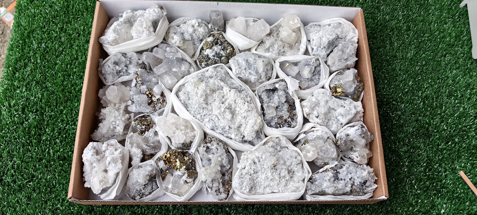 Lot 29 pieces calcite fluorescent chalcopyrite and pyrite*