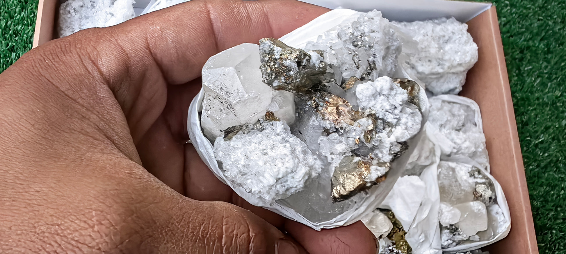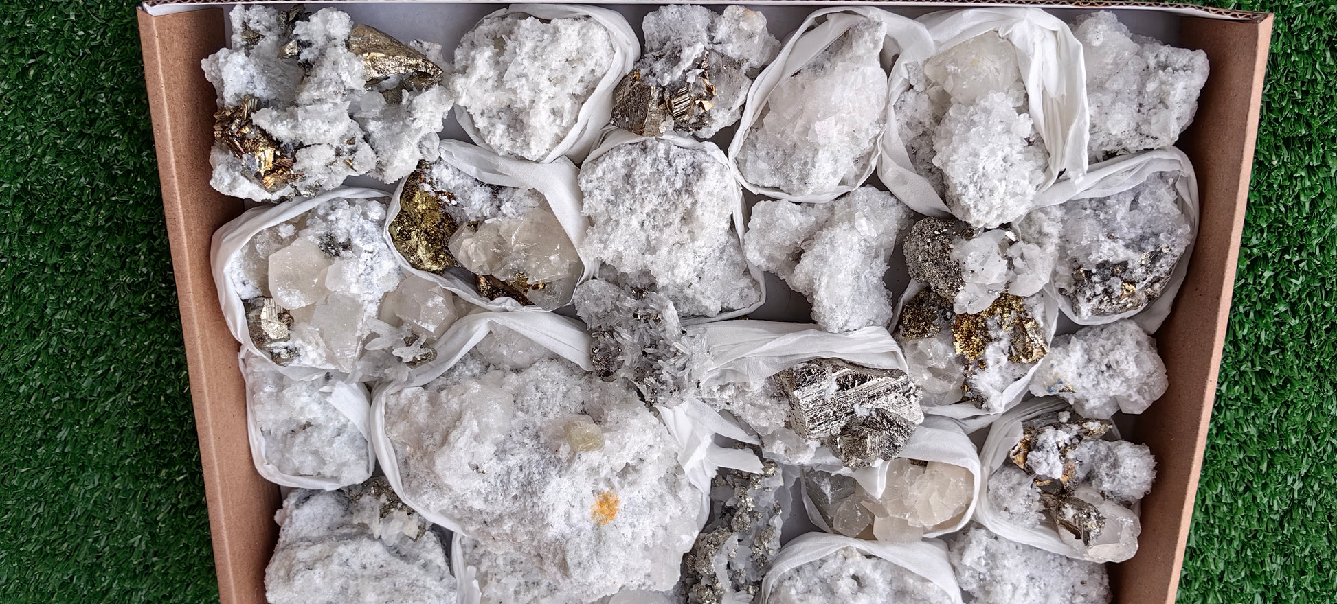 Lot 29 pieces calcite fluorescent chalcopyrite and pyrite*
