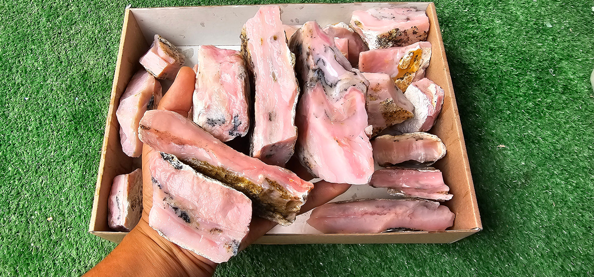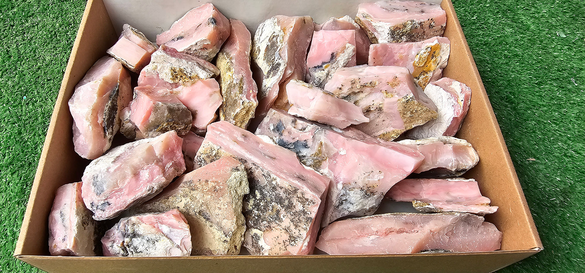 Pink Opal is a type of Common Opal that is generally opaque and does not show the “fire” like that of Precious Opals. The color ranges from a bright baby girl pink to a pink-white, cream, or even lavender. Over the course of time Pink Opal has adopted the nickname “Peppermint candy stone”, due to its close resemblances to that of candies. The country of Peru is known to have the brightest and most impressive Pink Opal specimens, but it can also be found in other South American countries, USA, and even Australia. It's very important to not expose your Opal to sunlight, as this stone has water within.