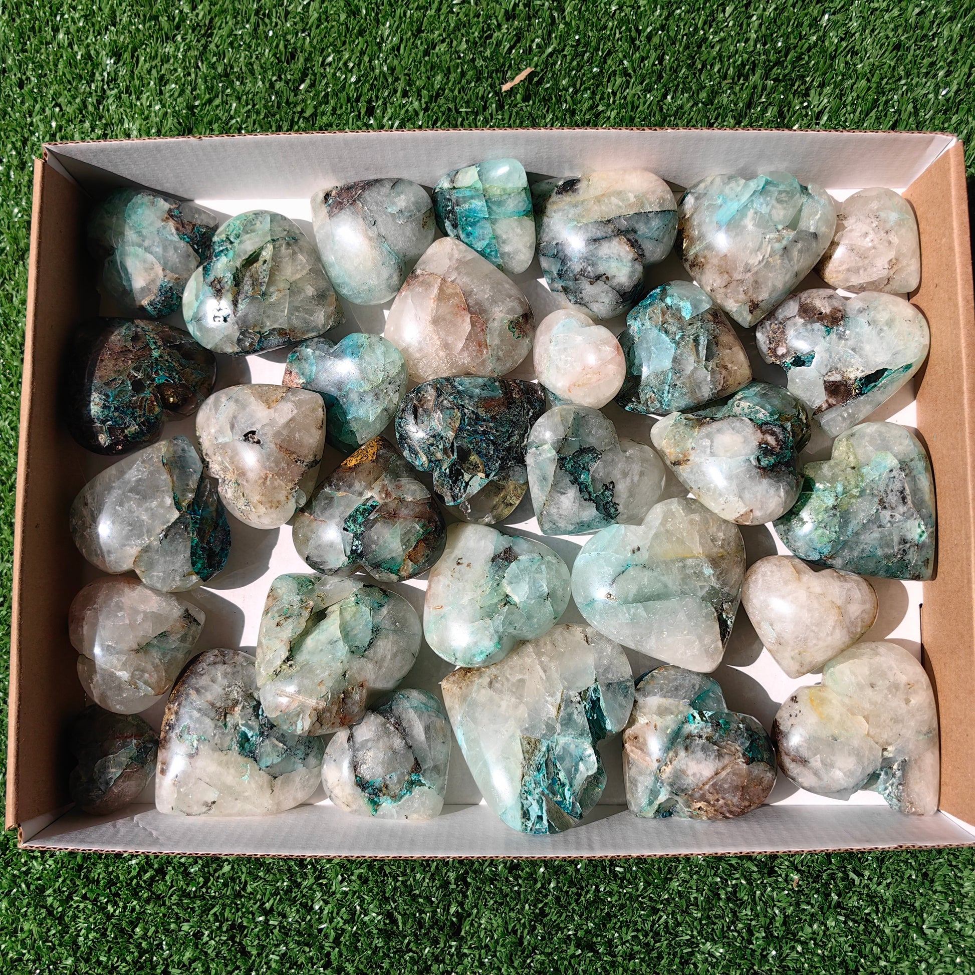 Lot 31 pcs Chrysocolla on Quartz Heart
