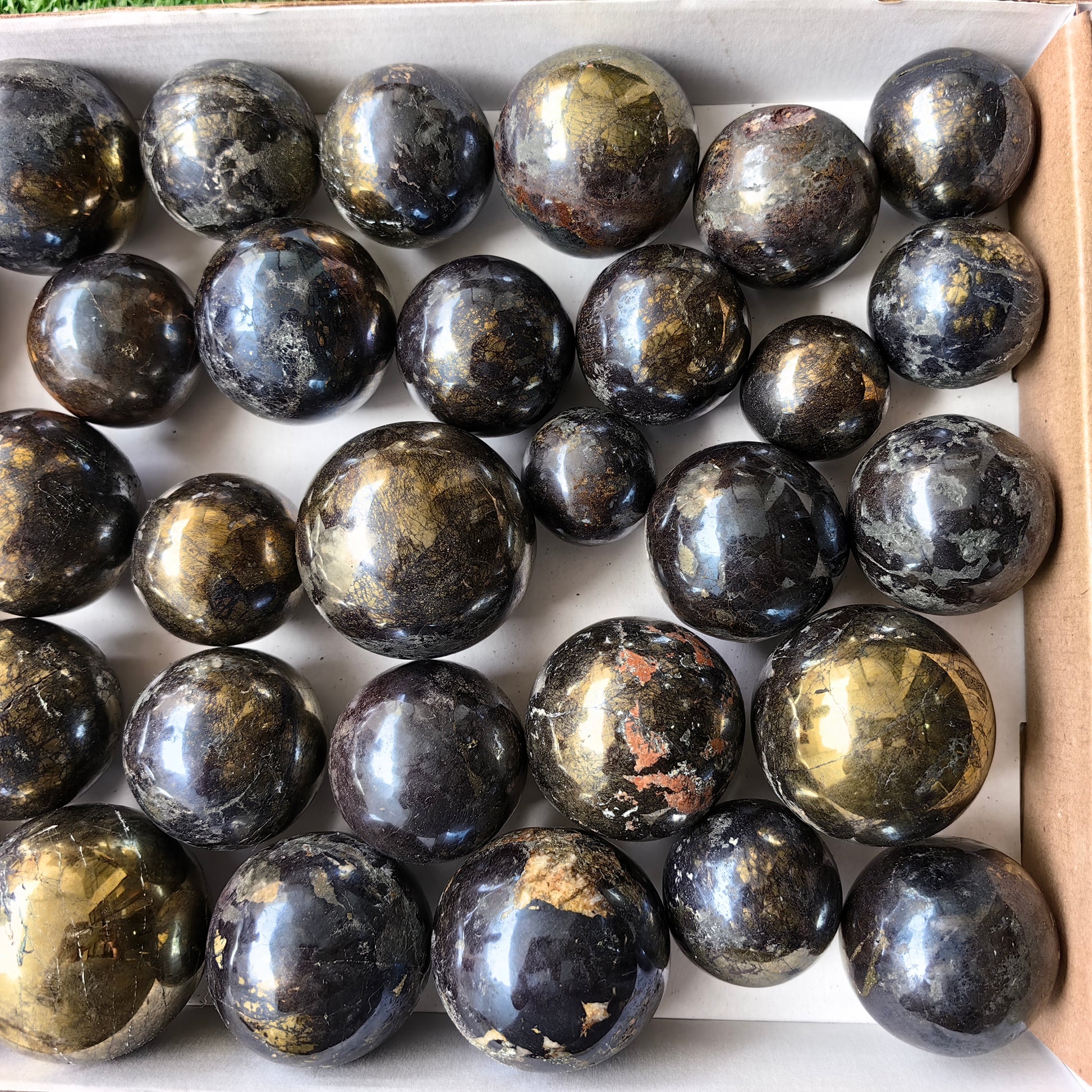lot 32 pcs Covellite on Chalcopyrite sphere