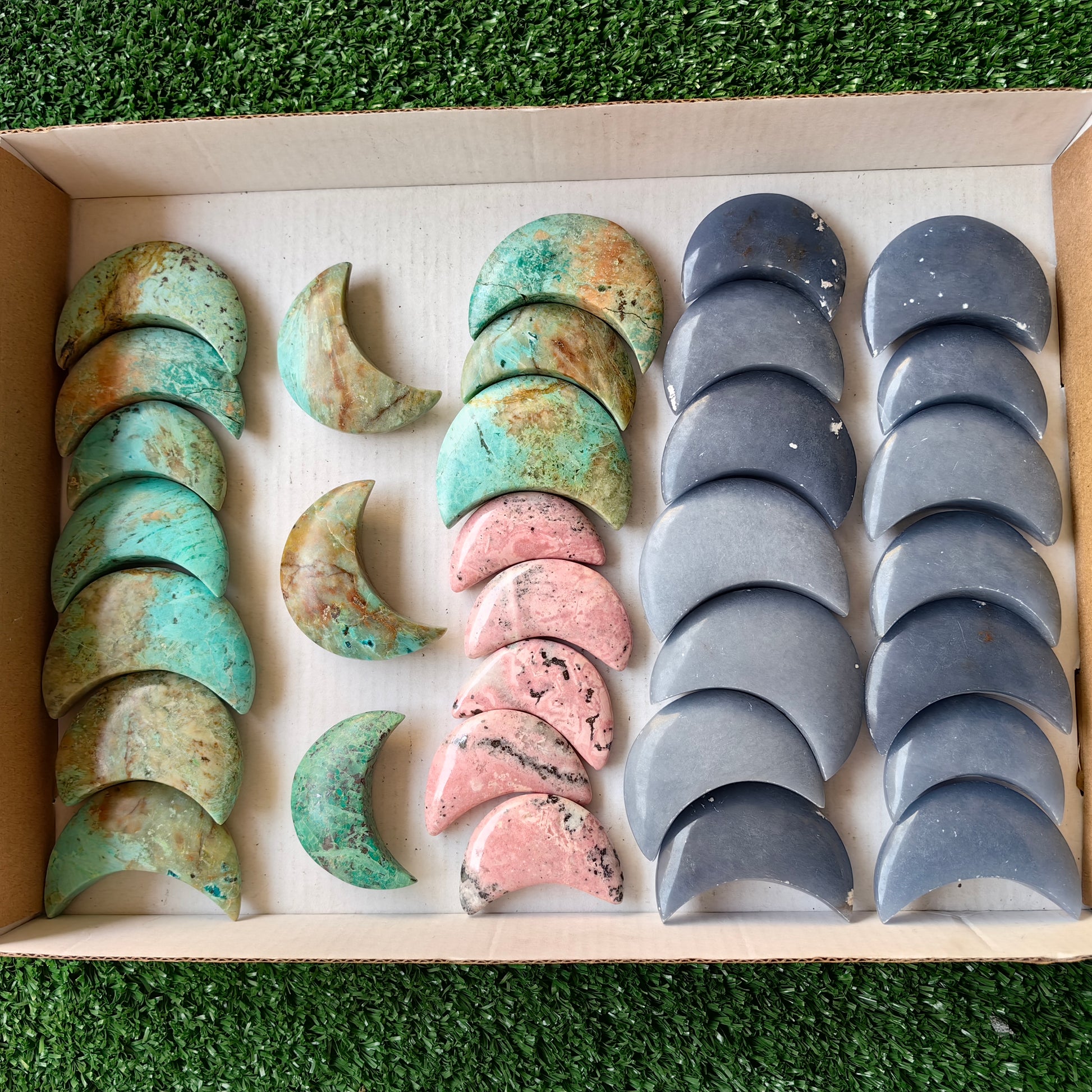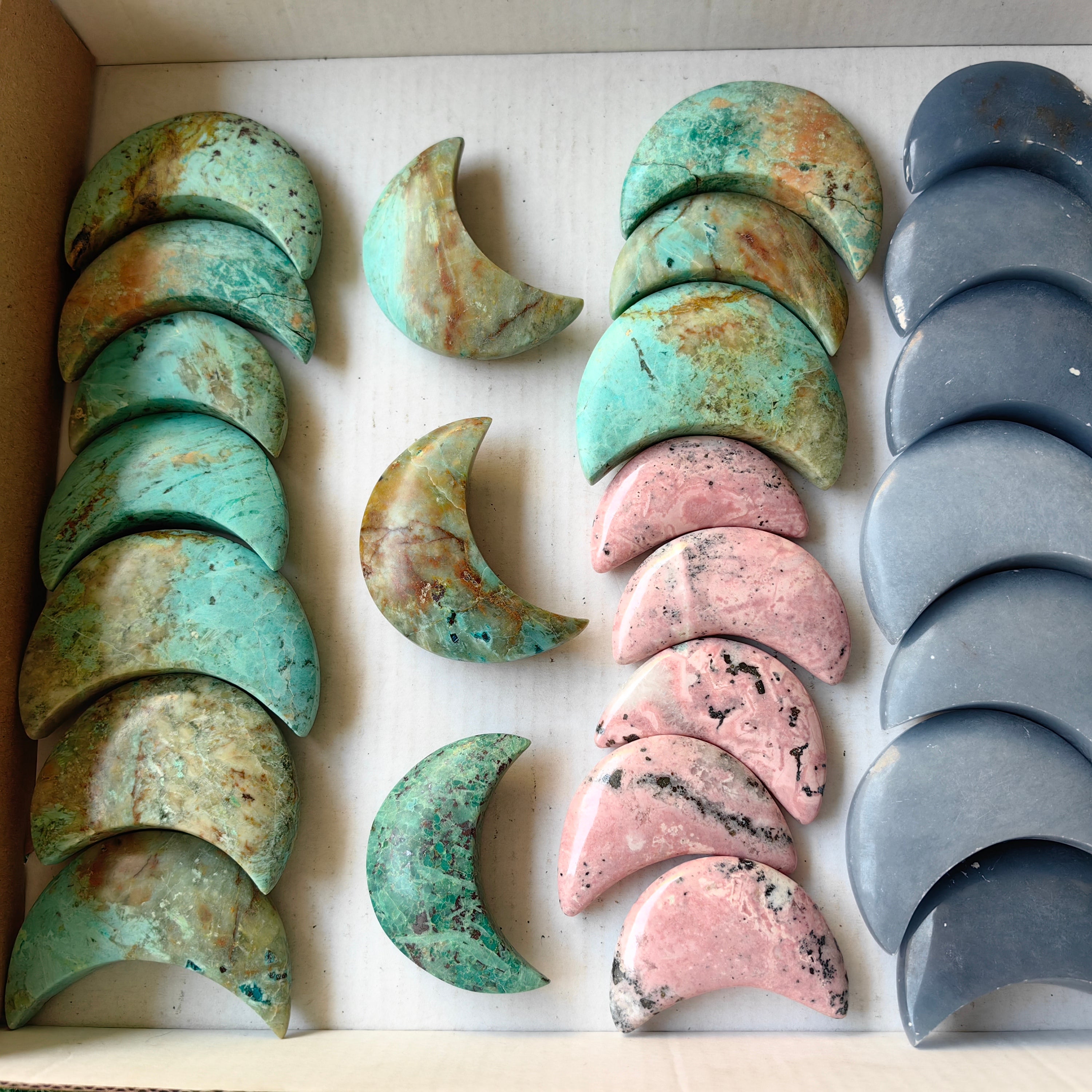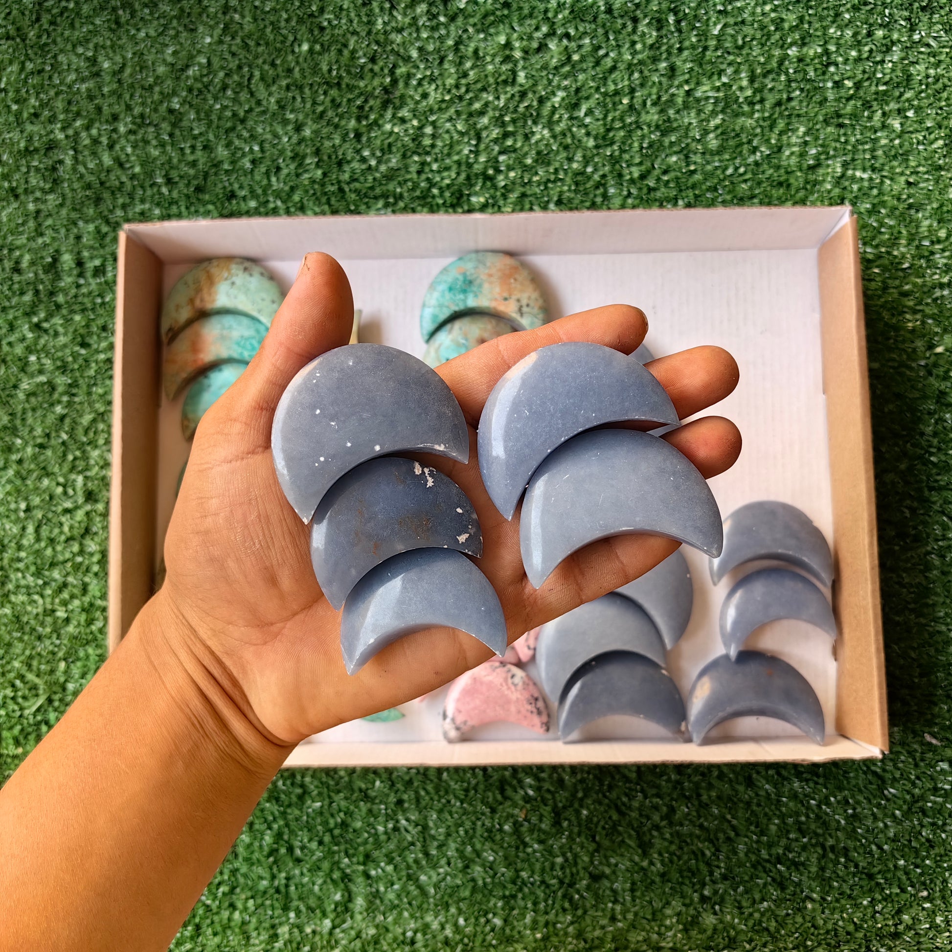 Lot 32 pcs Peruvian Turquoise / Angelite / Rhodonite moon