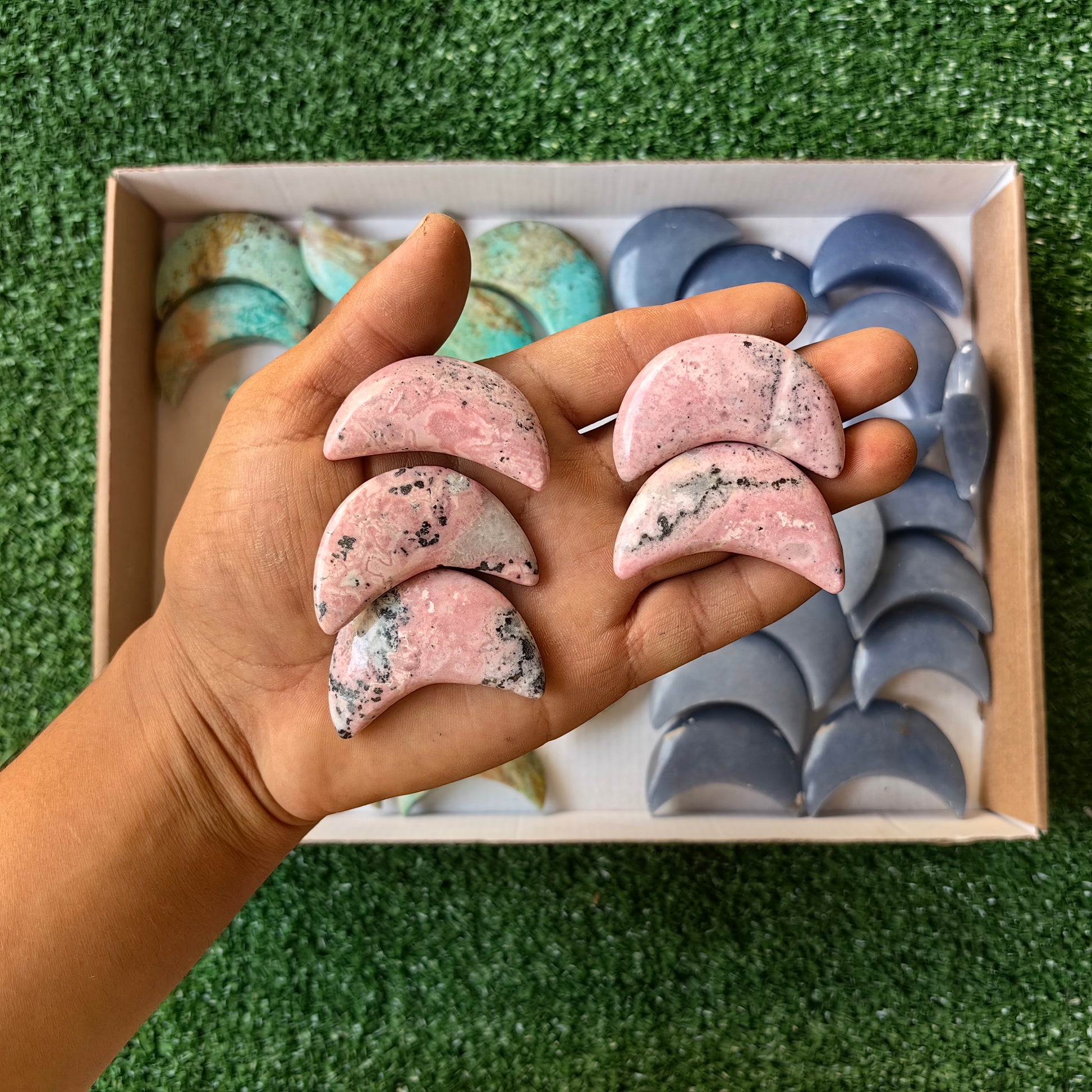 Item: Peruvian Turquoise / Angelite / Rhodonite moon