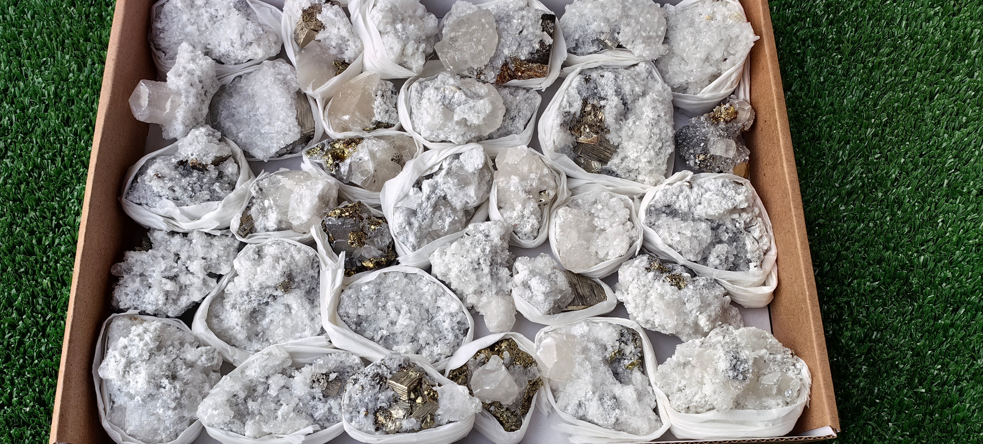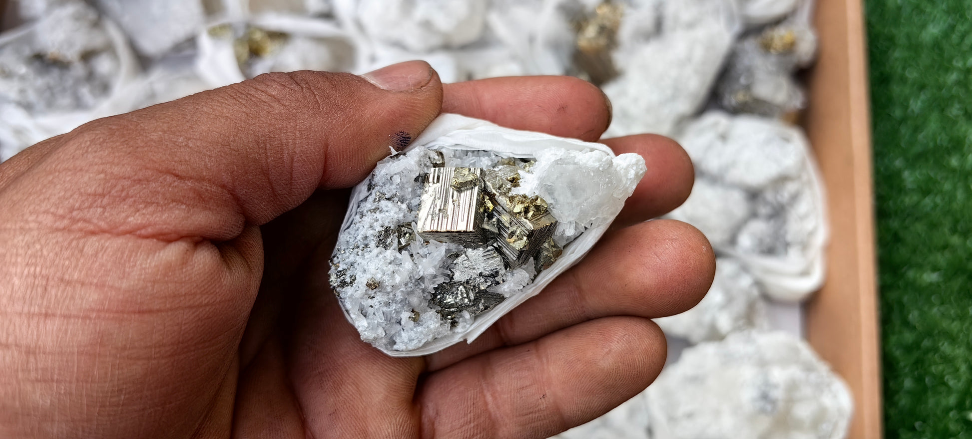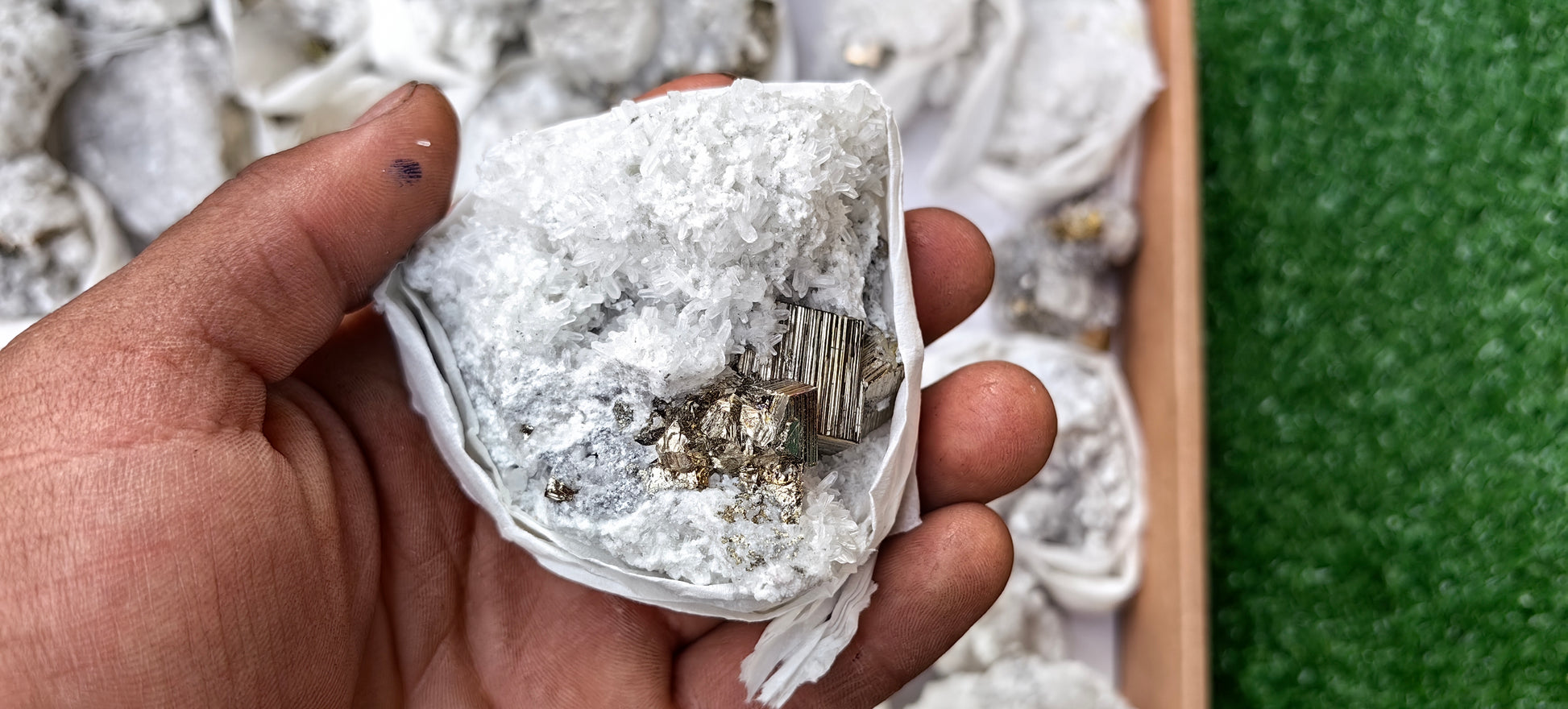 Lot 32 pieces calcite fluorescent chalcopyrite and pyrite*