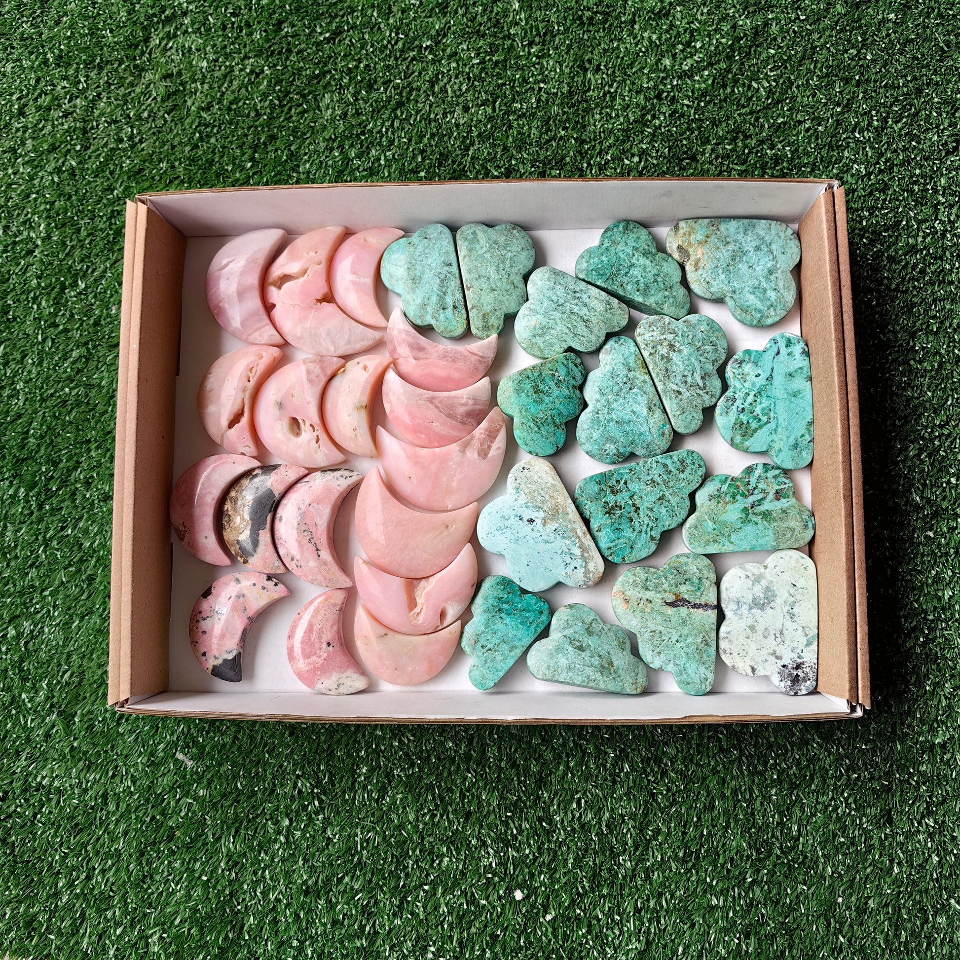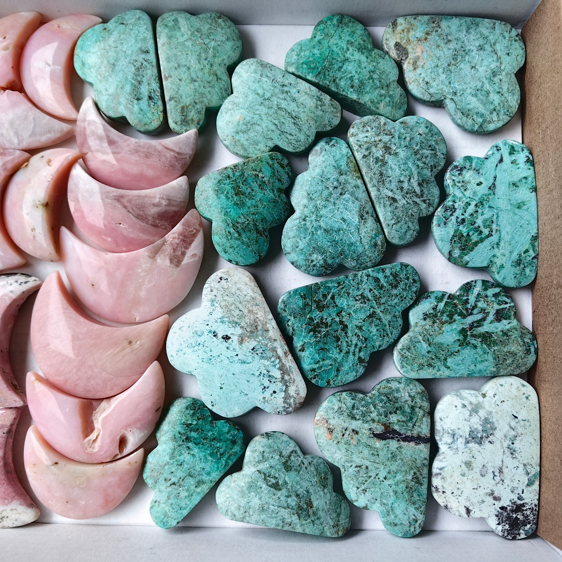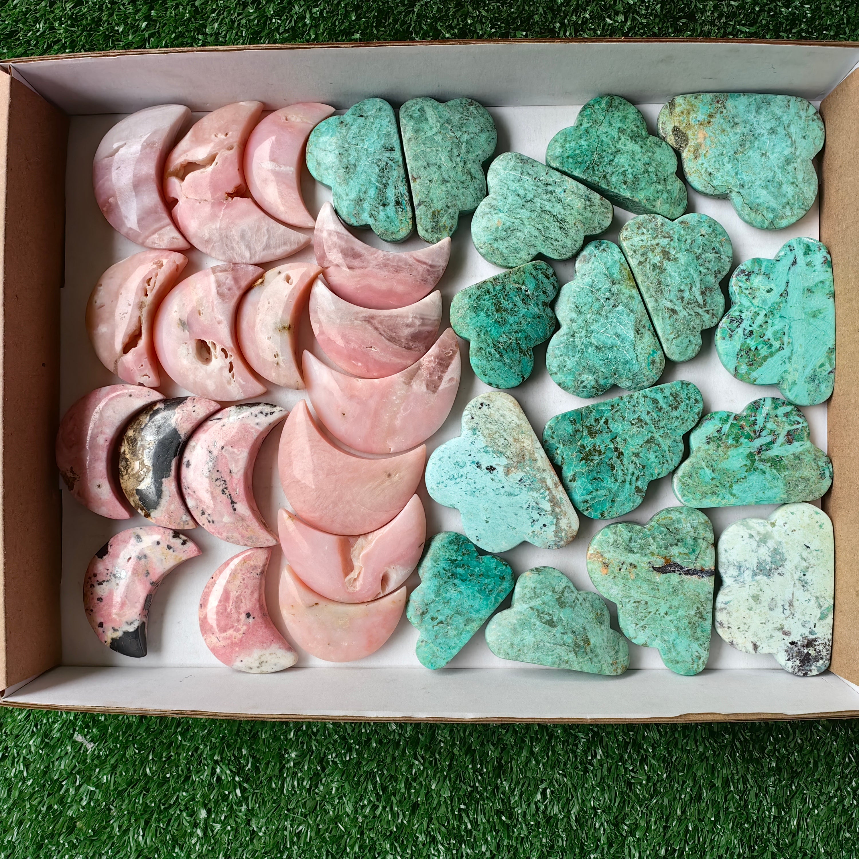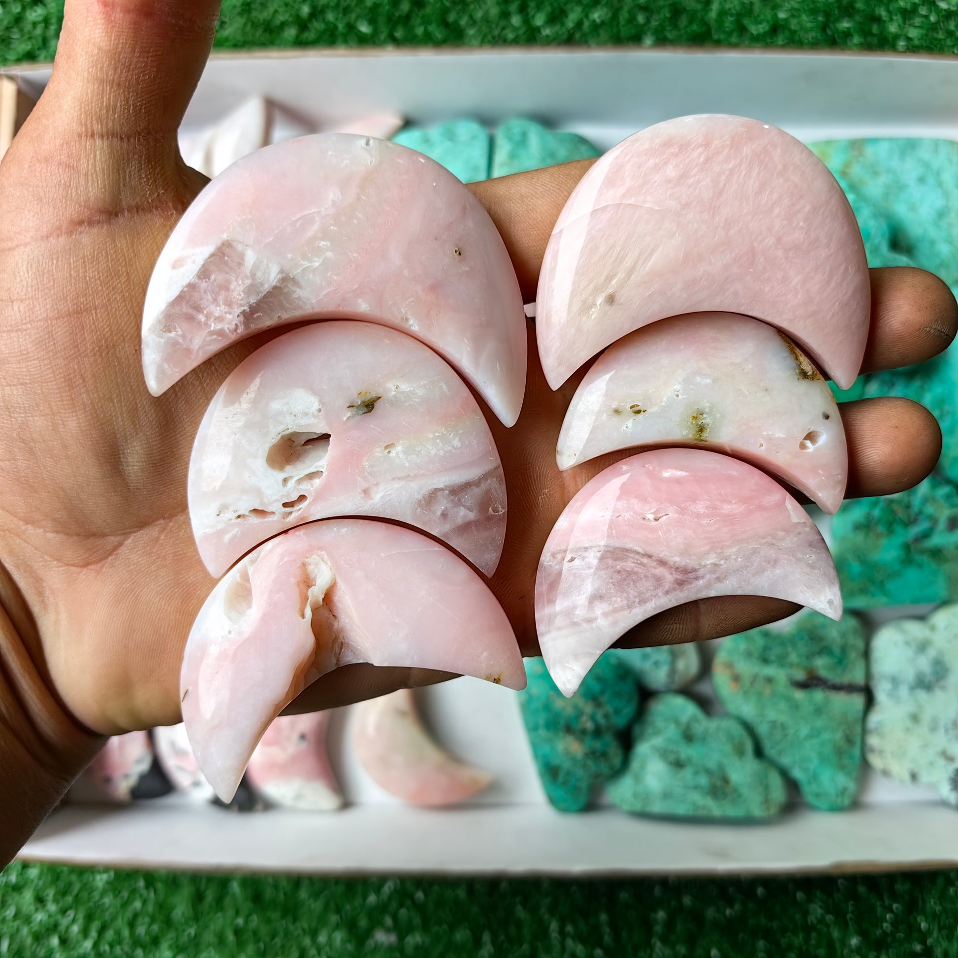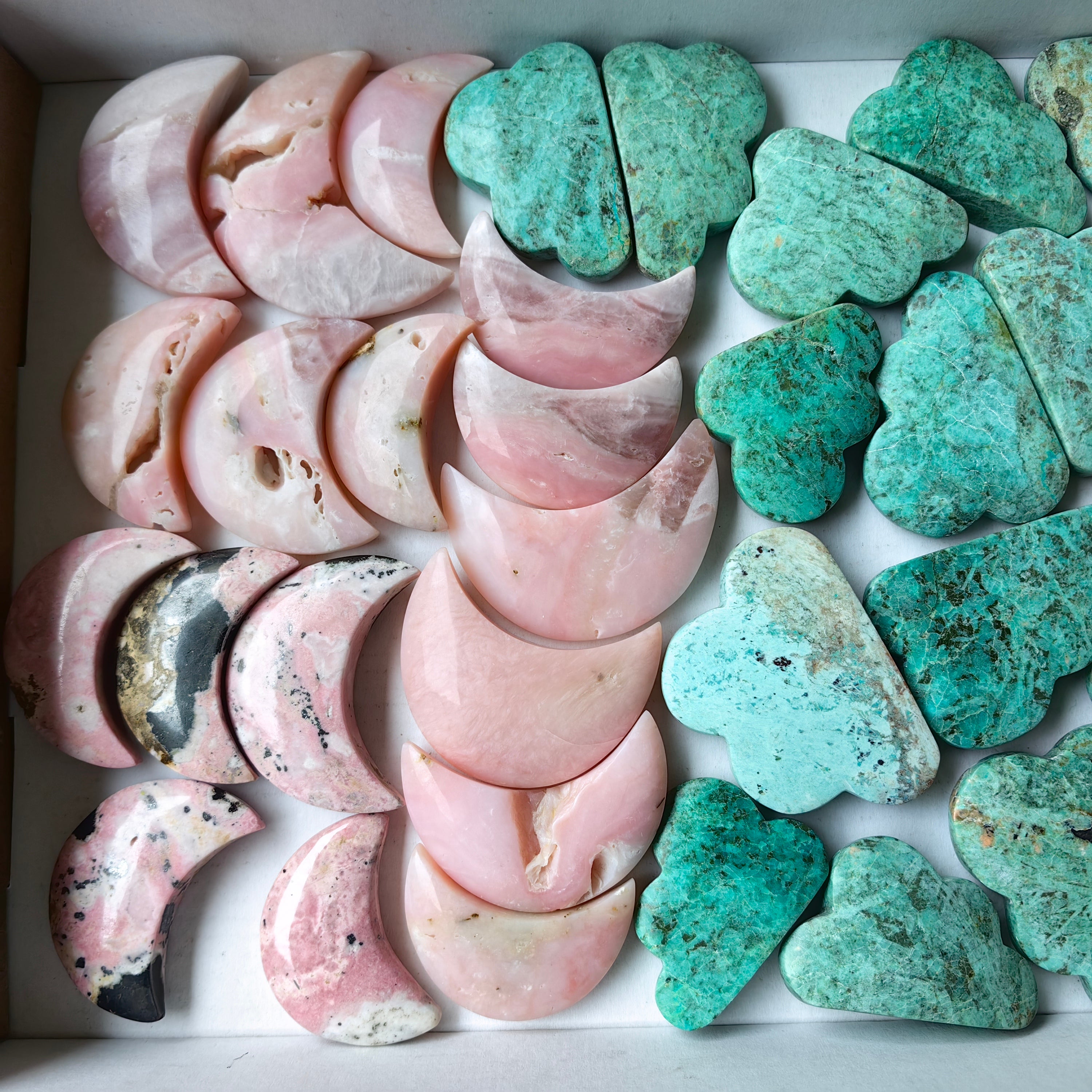 Lot 33 pcs Pink Opal, Rhodonite, Peruvian Turquoise Moon and cloud