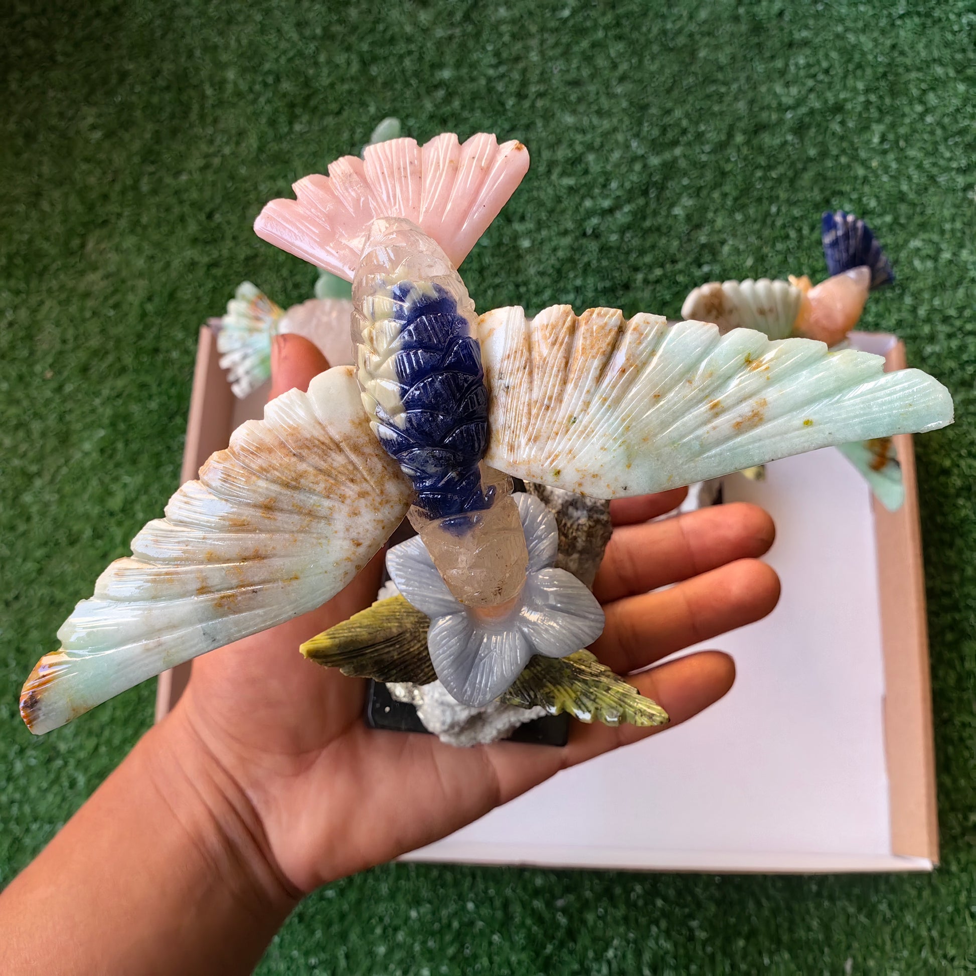 Item: hummingbird mixted stones (sodalite, pink opal, pyrite