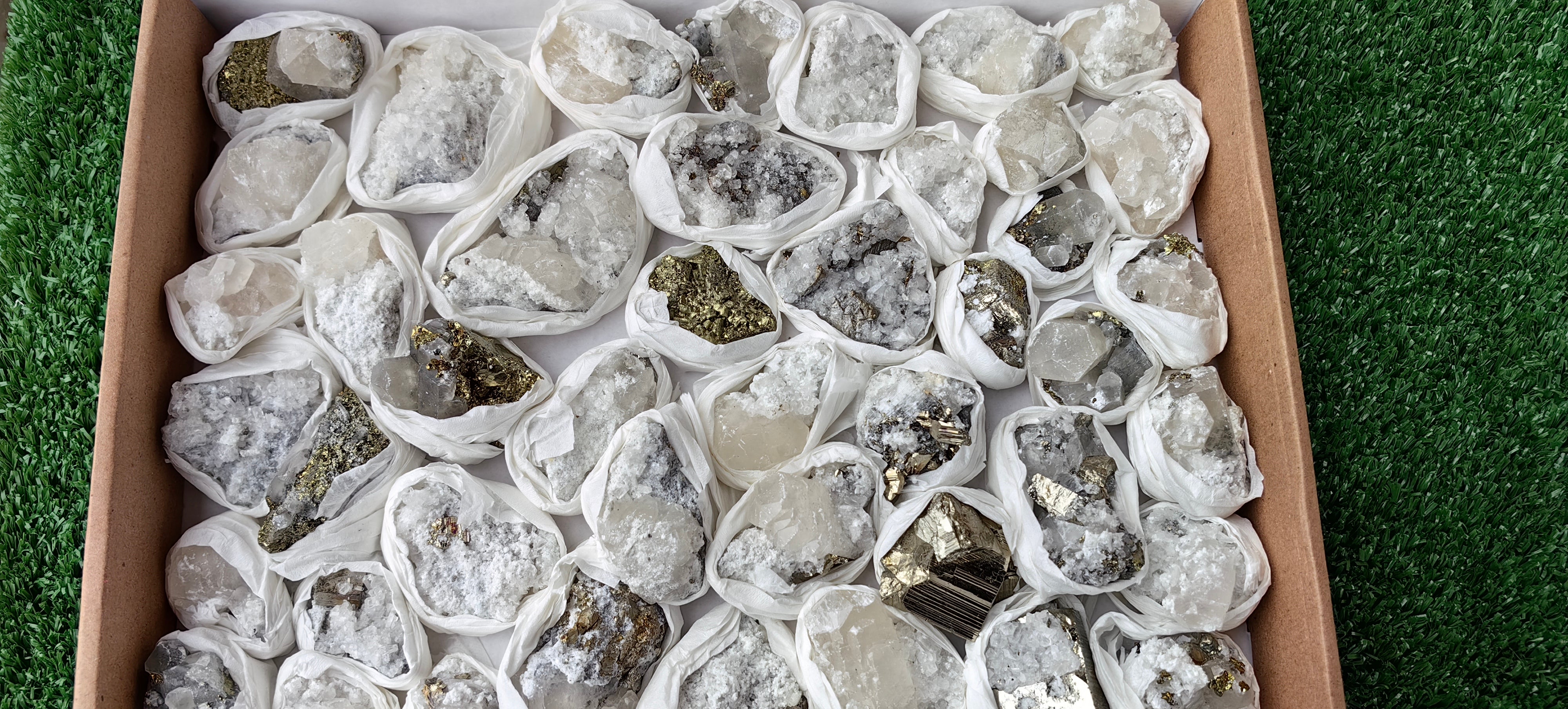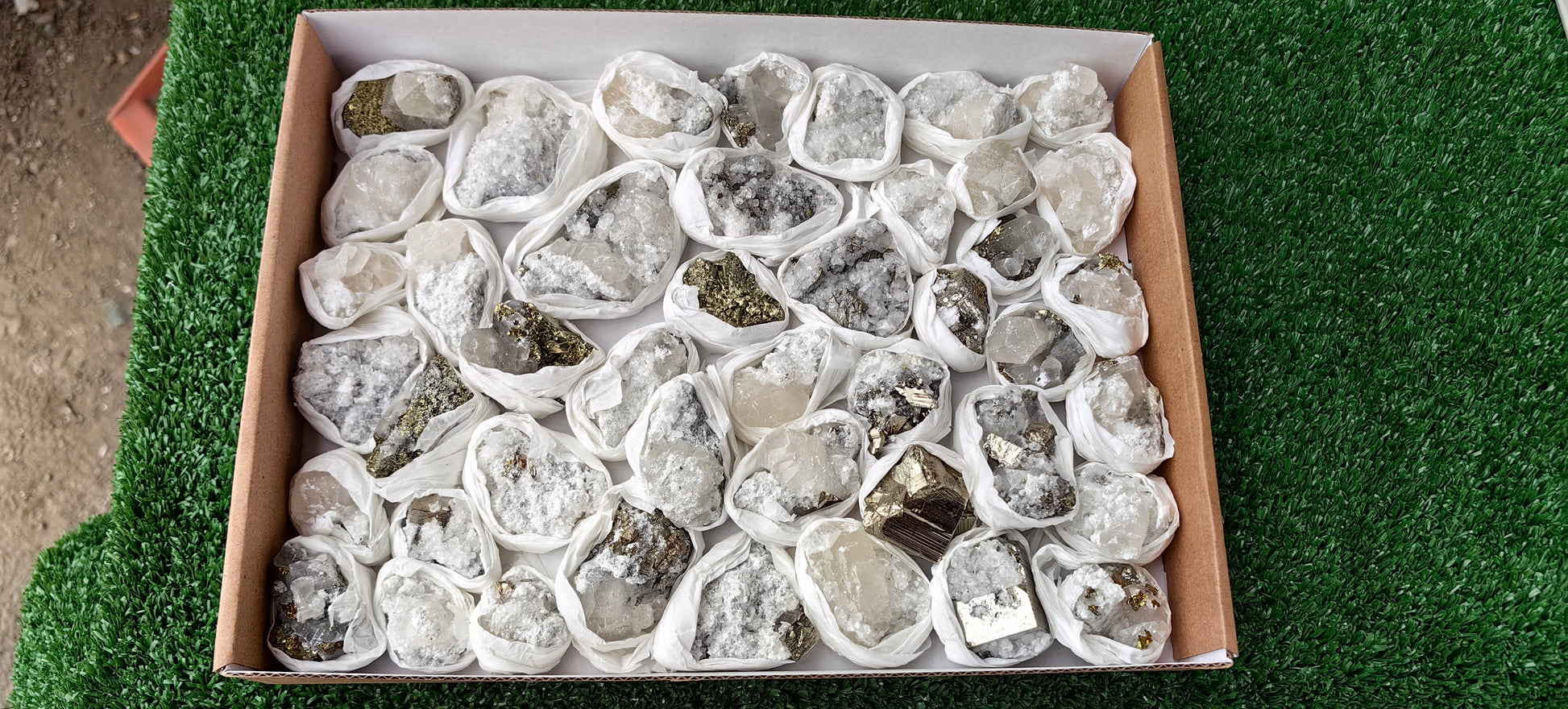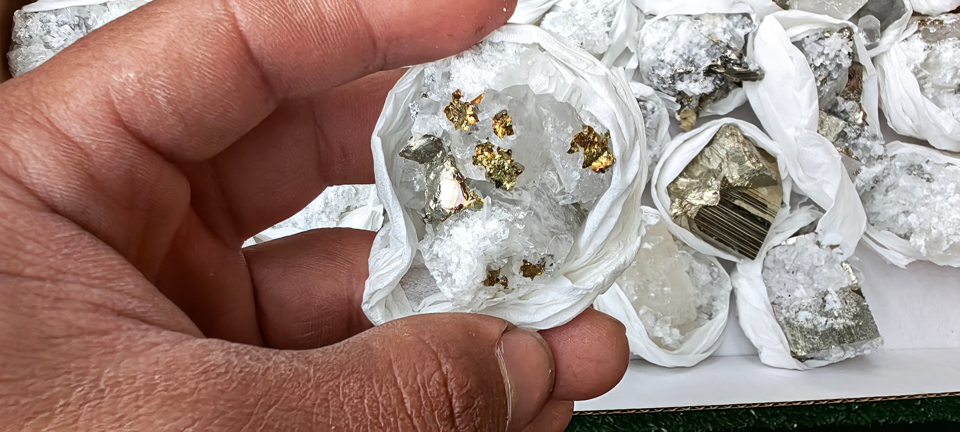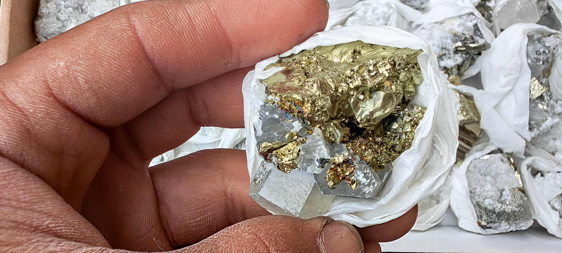 Lot 43 pieces calcite fluorescent chalcopyrite and pyrite*