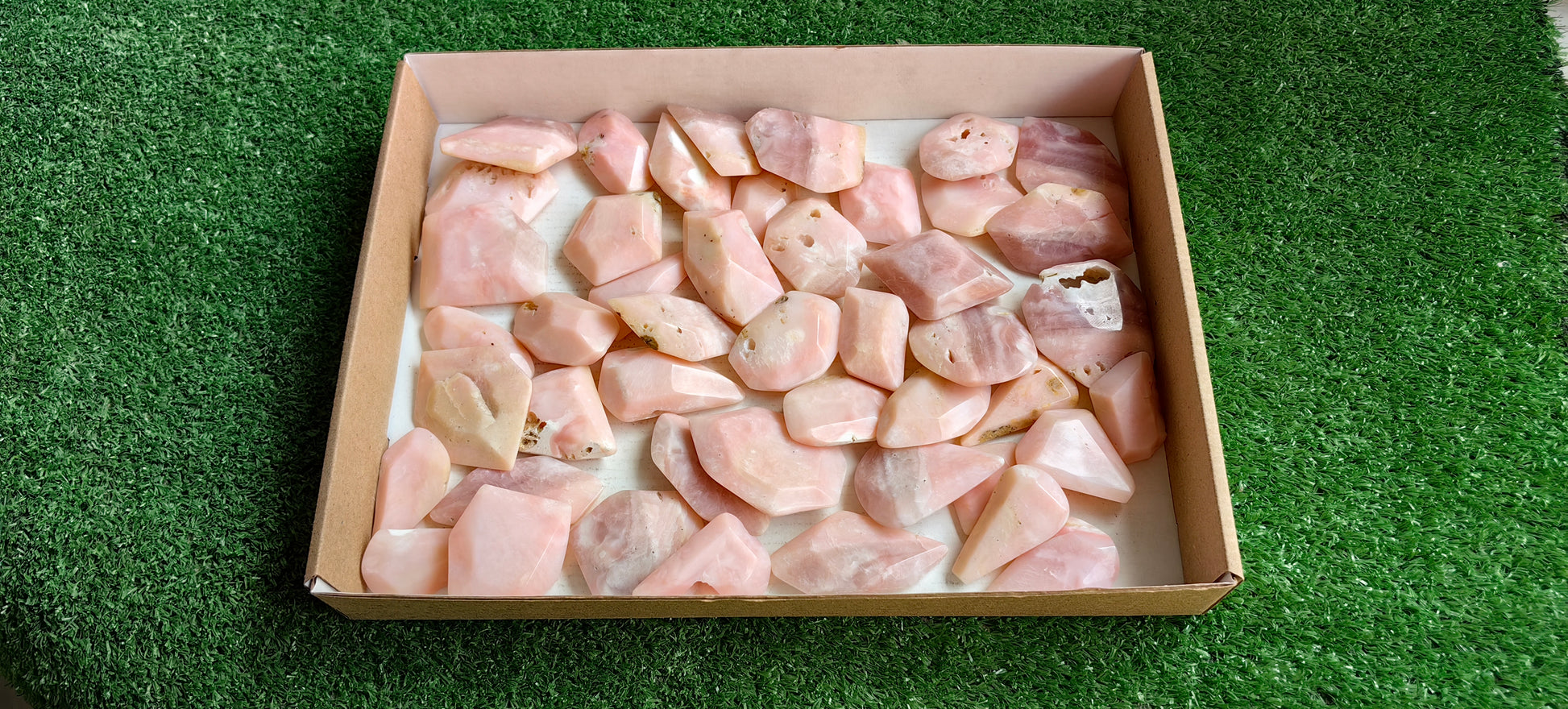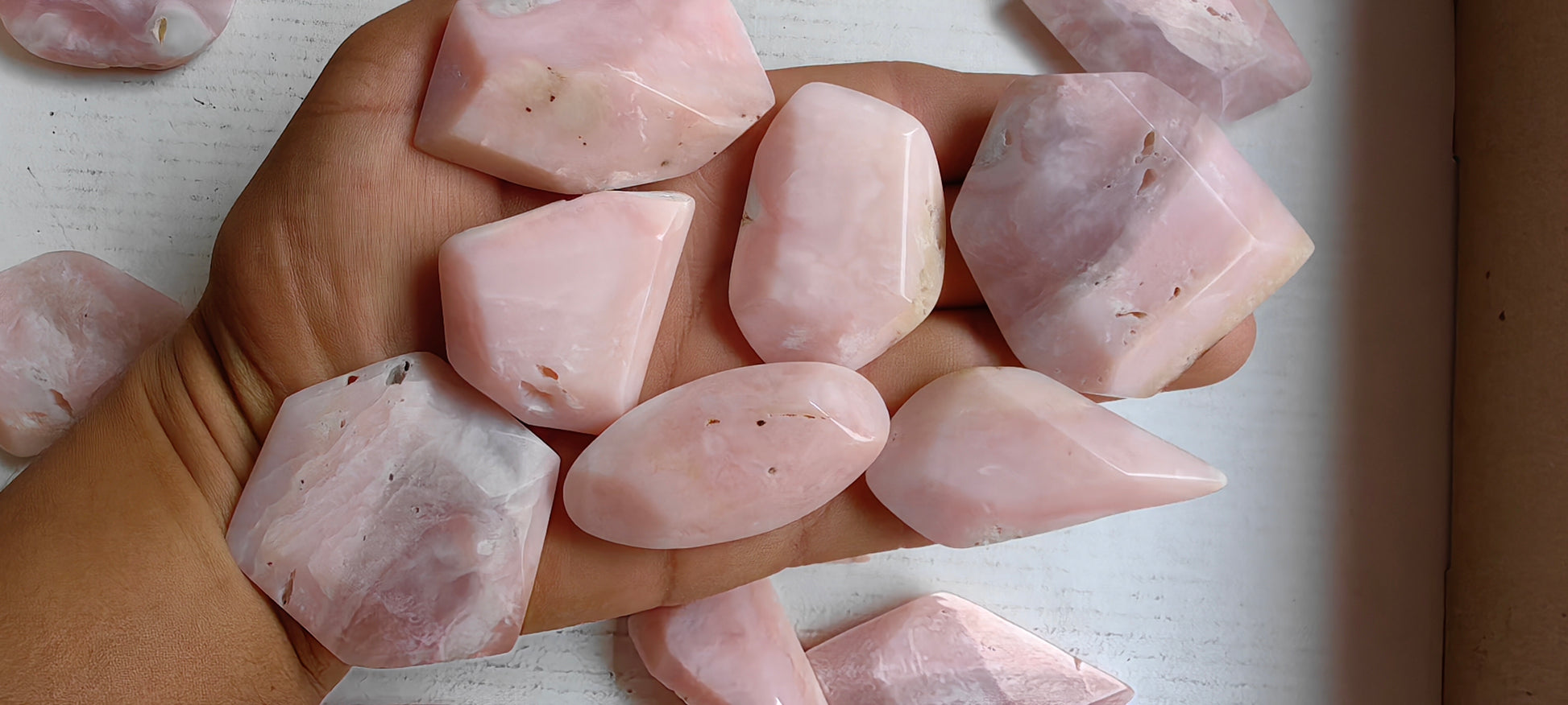 Pink Opal is a type of Common Opal that is generally opaque and does not show the “fire” like that of Precious Opals. The color ranges from a bright baby girl pink to a pink-white, cream, or even lavender. Over the course of time Pink Opal has adopted the nickname “Peppermint candy stone”, due to its close resemblances to that of candies. The country of Peru is known to have the brightest and most impressive Pink Opal specimens, but it can also be found in other South American countries, USA, and even Australia. It's very important to not expose your Opal to sunlight, as this stone has water within. This occurrence will cause your specimen to become very dry and brittle, and potentially break.