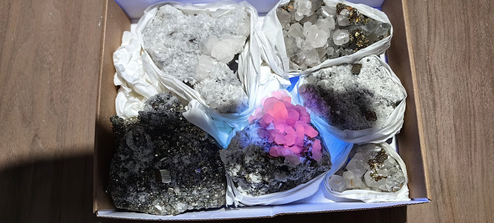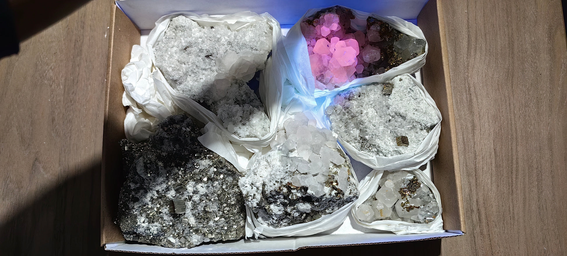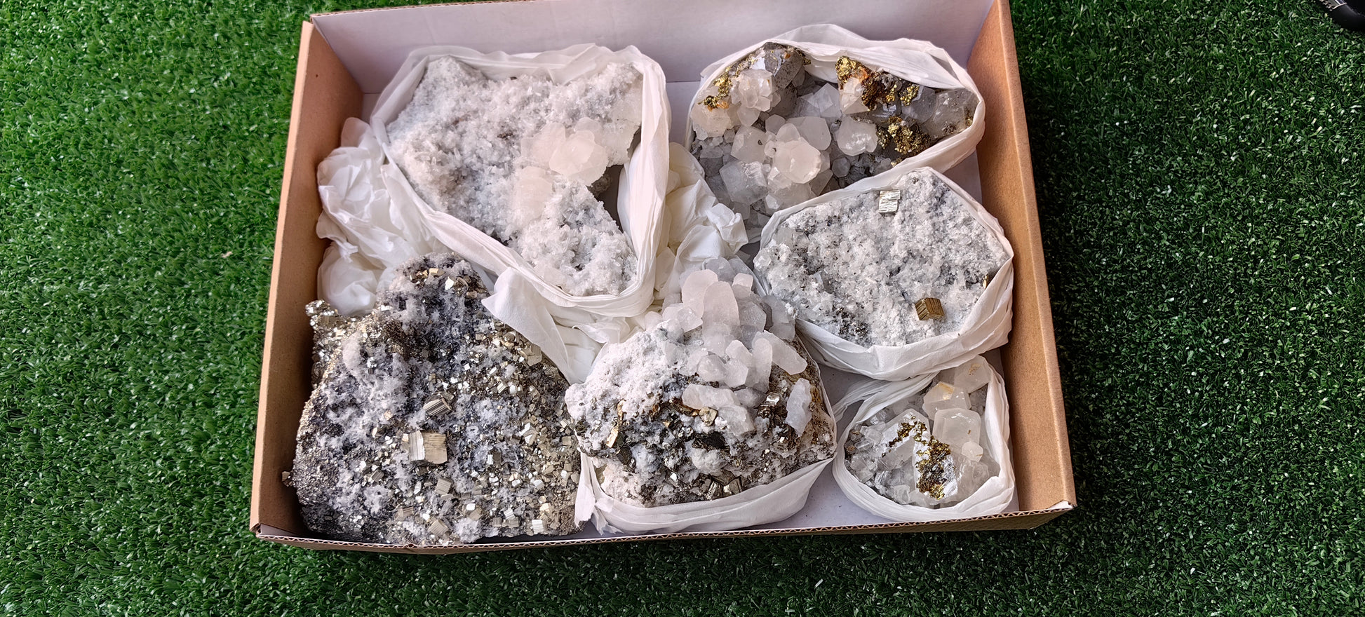 Lot 6 pieces calcite fluorescent chalcopyrite and pyrite*