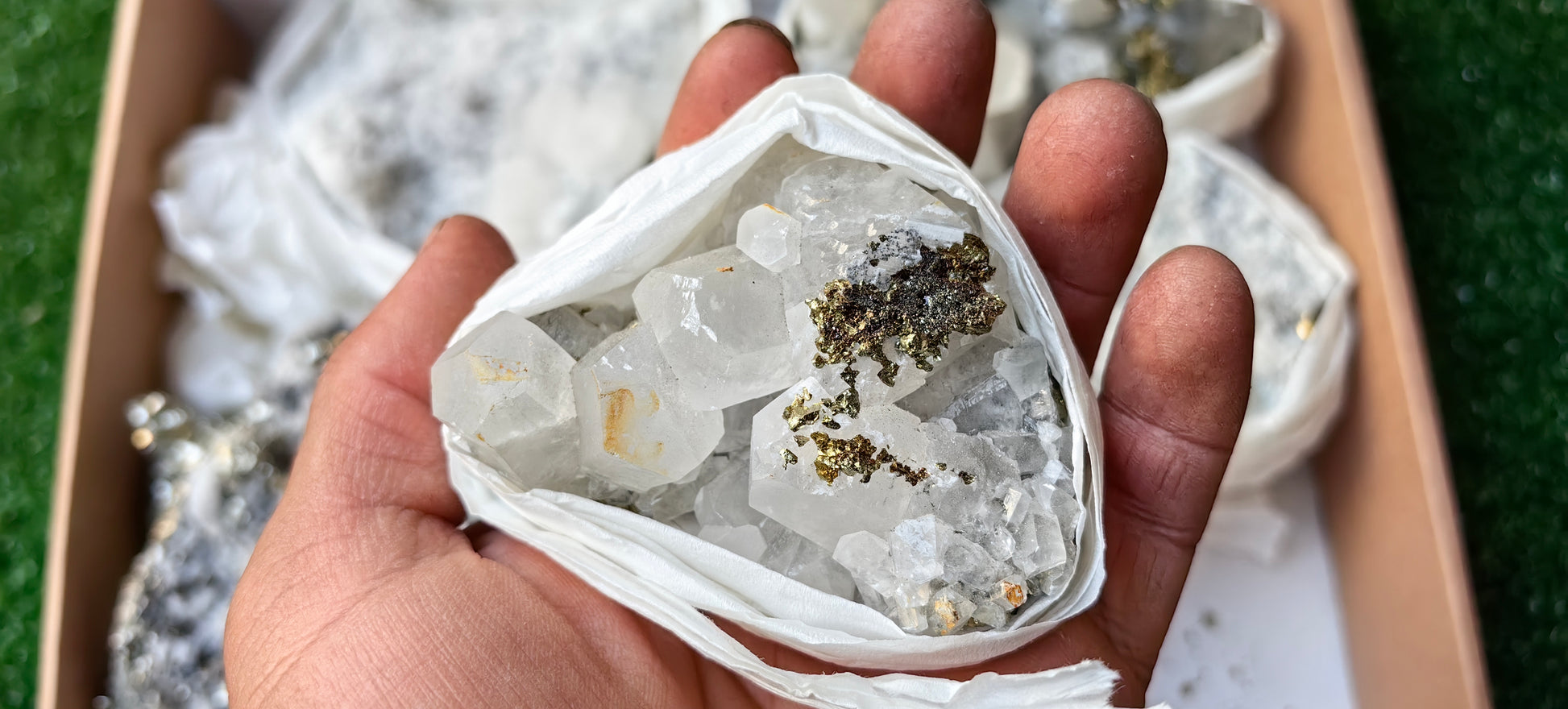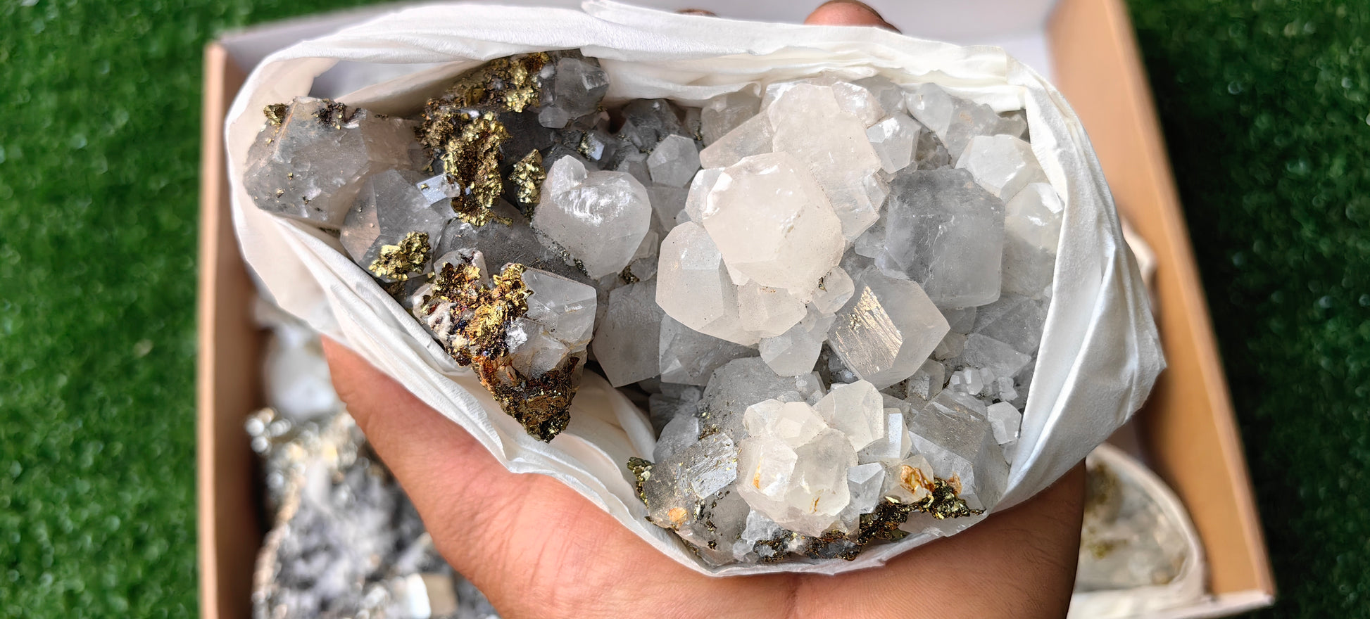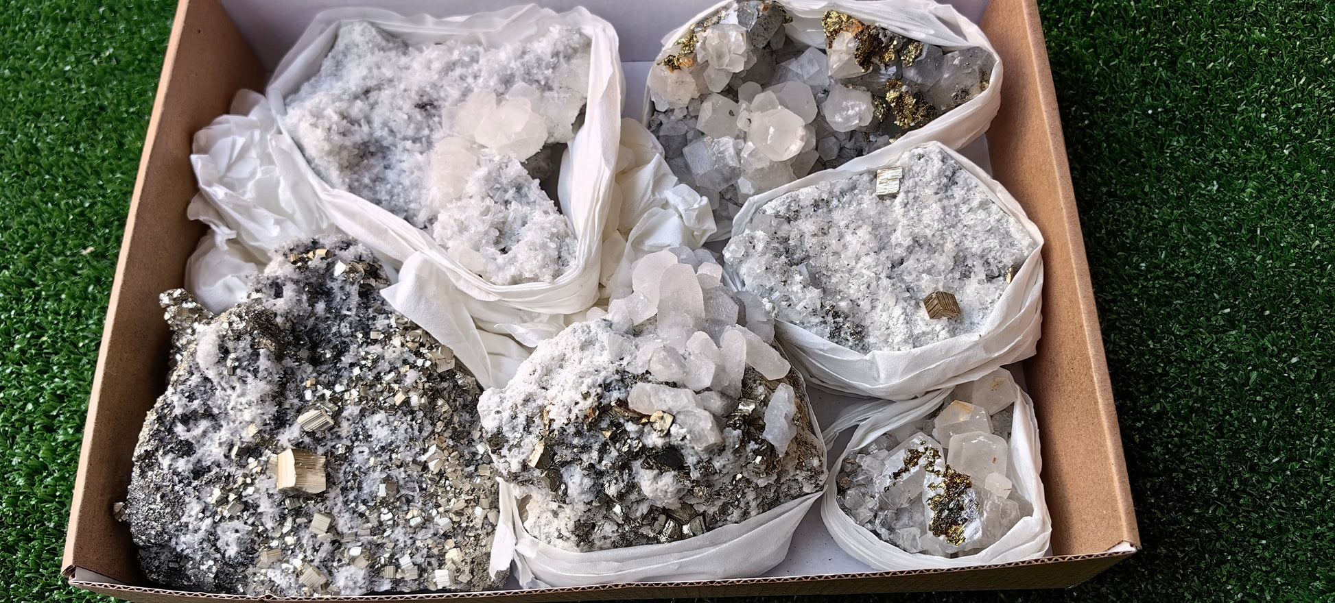Lot 6 pieces calcite fluorescent chalcopyrite and pyrite*
