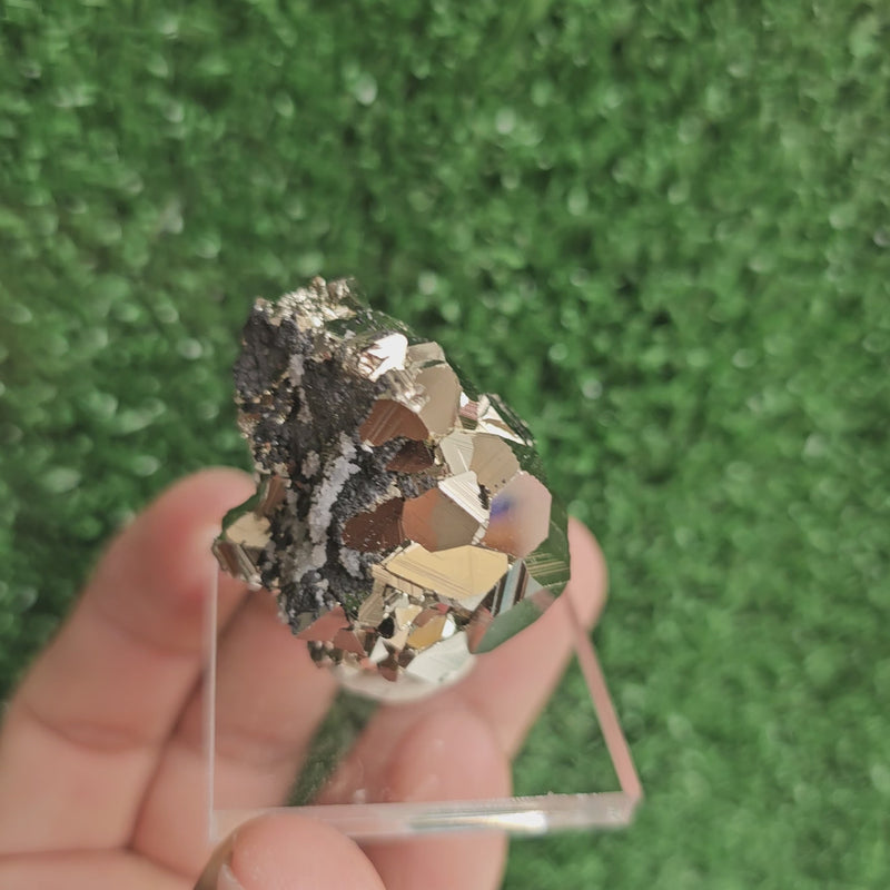 This is beautiful Pyrite crystals. It comes from the Huanzala Mine in Peru.